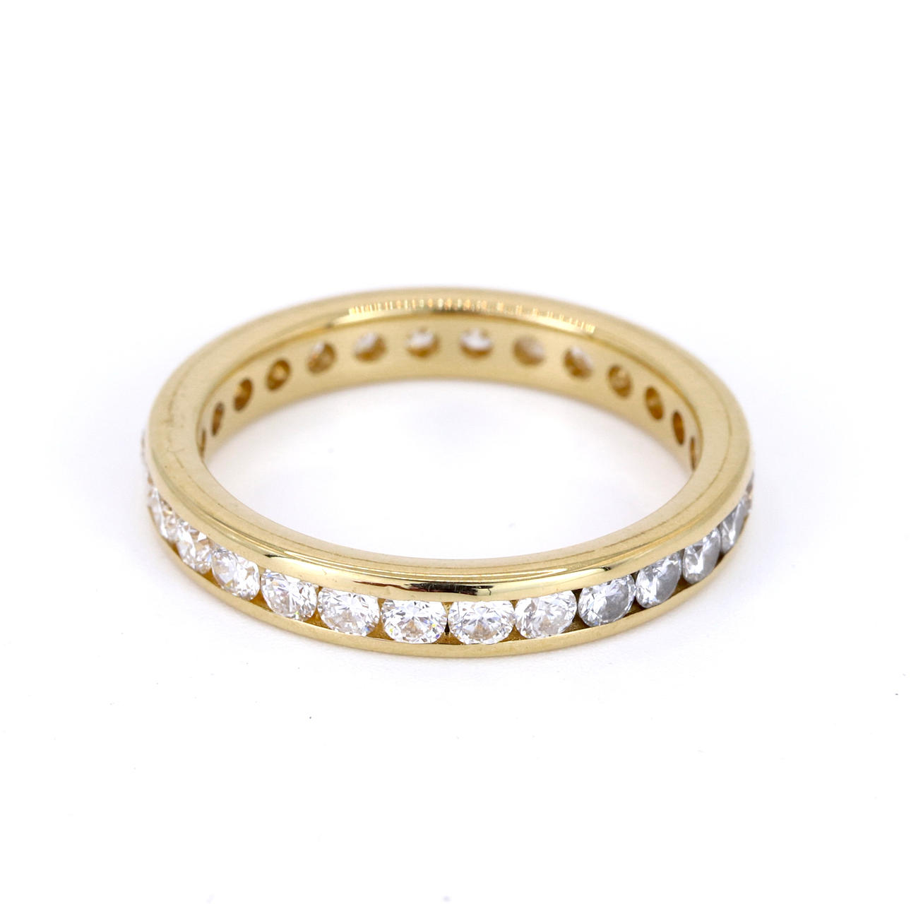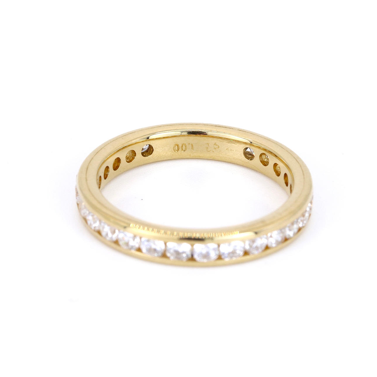 An 18ct yellow gold full eternity ring set with round brilliant cut diamonds. Dia. total: 1ct approx. Colour: G-H. Clarity: SI.