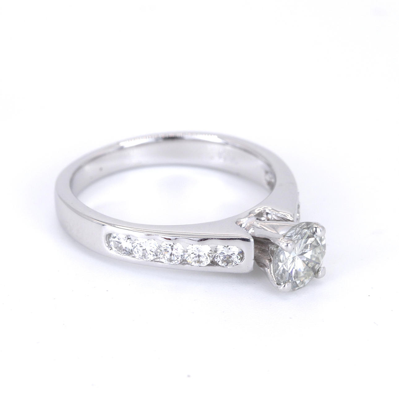 An 18ct white gold solitaire ring set with round brilliant cut diamond and diamonds to the shoulders.
