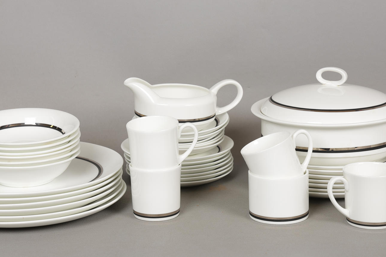To include two tureens, dinner and side plates, cups, saucers and bowls (qty).