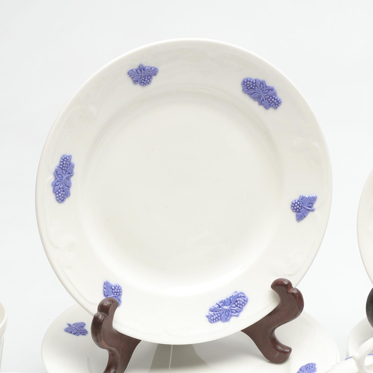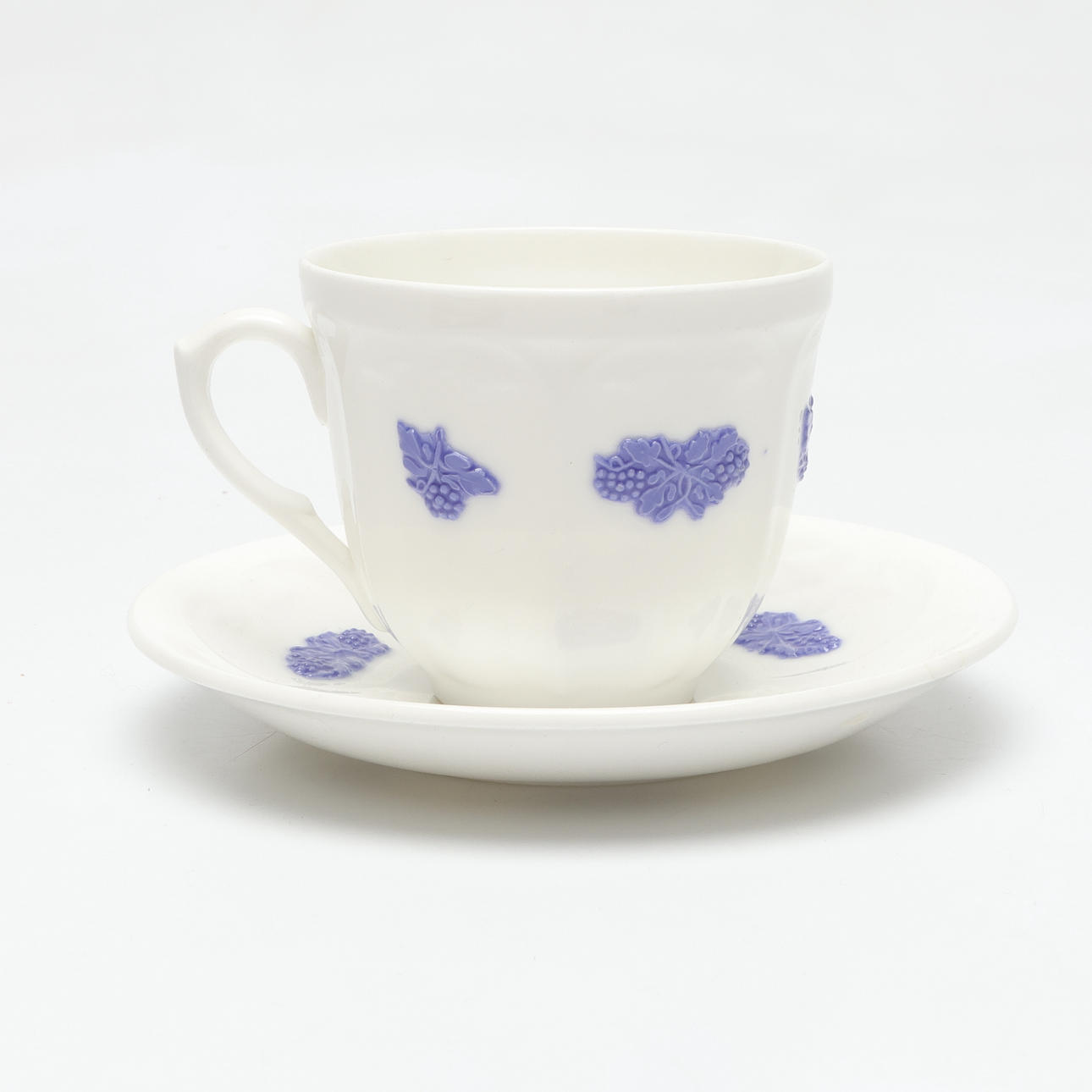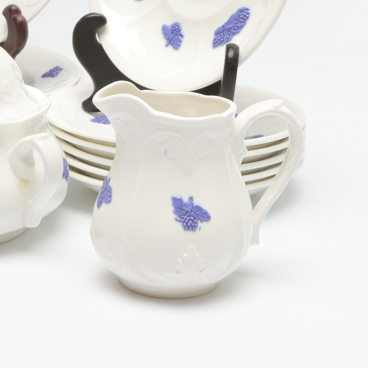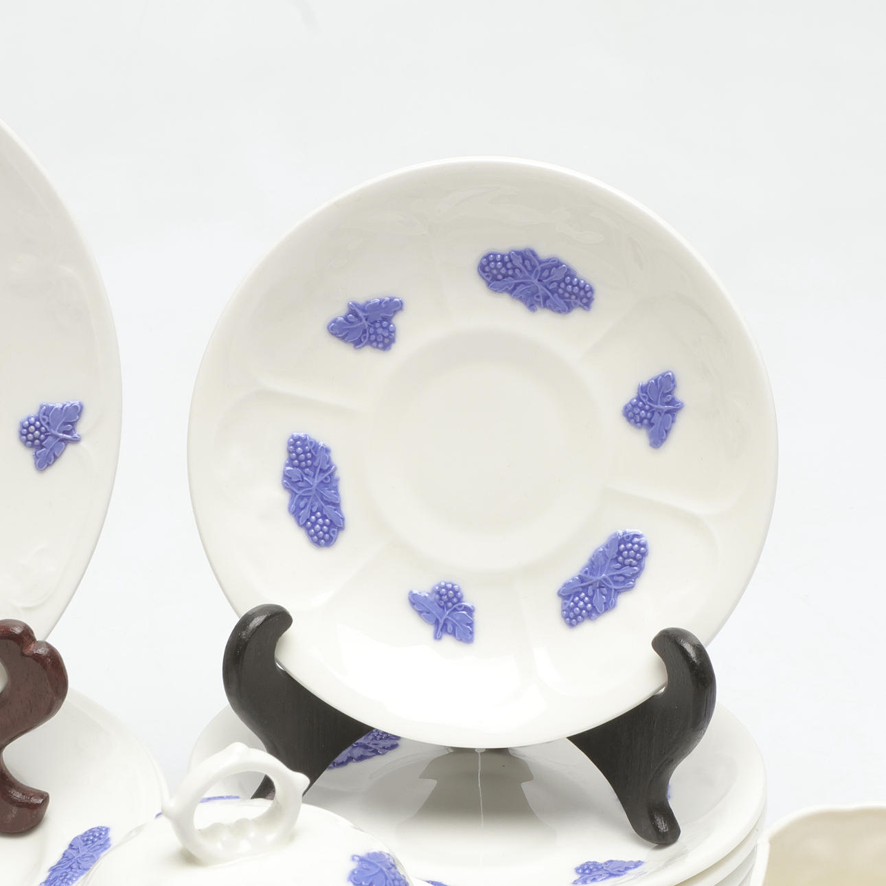 5 cups with saucer. 5 side dishes. Sour cream jug and sugar bowl.