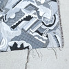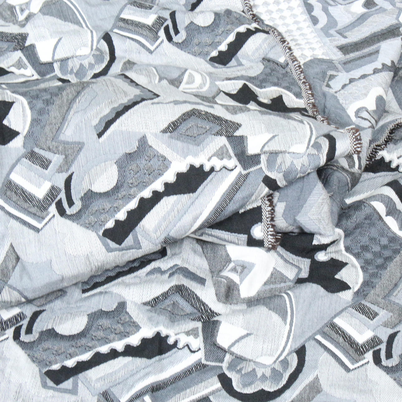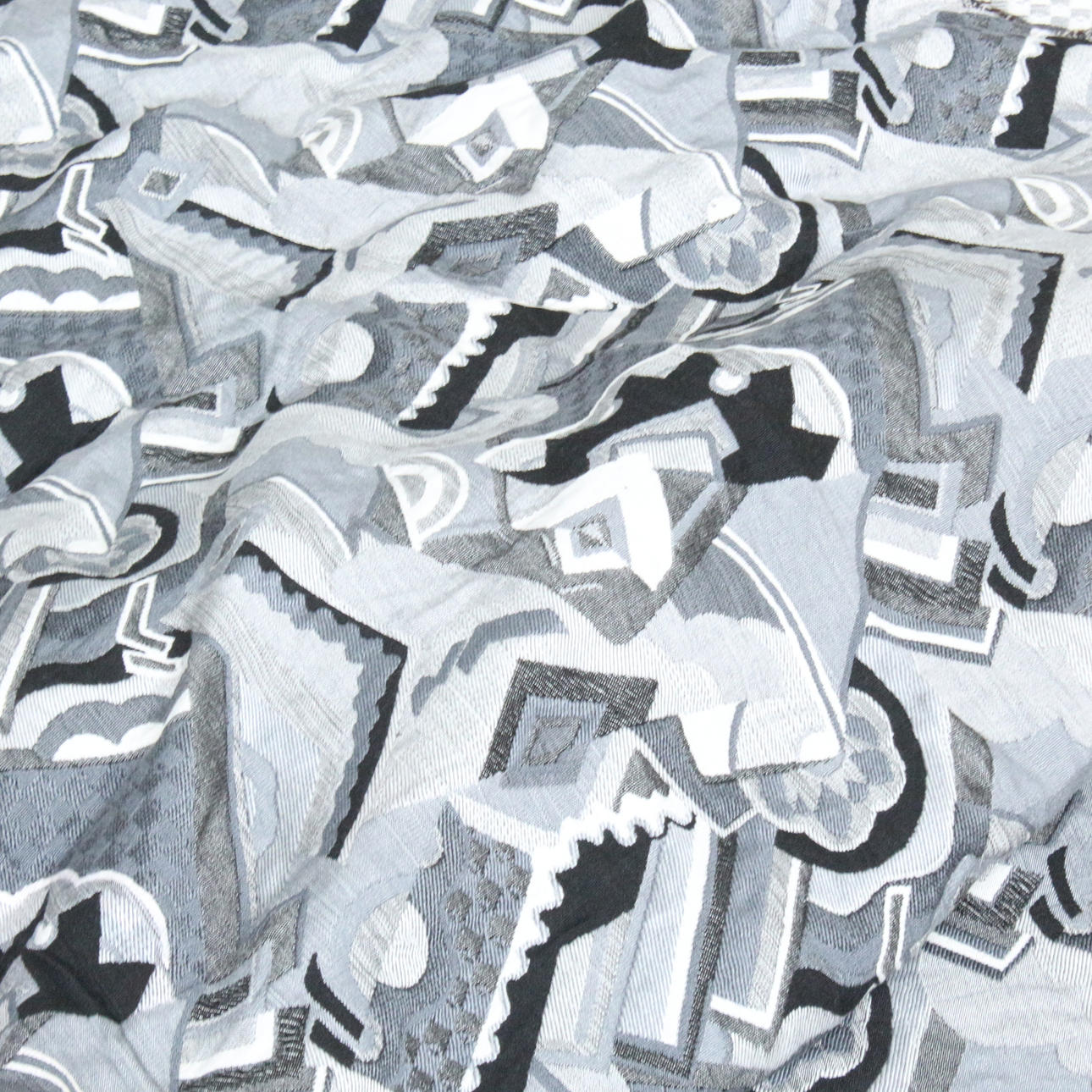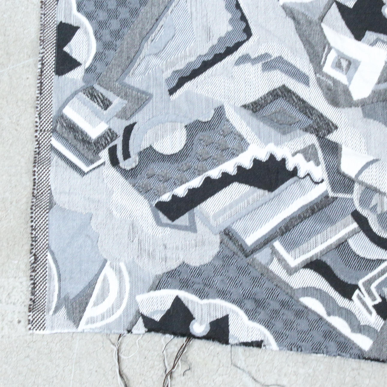 Art deco upholstery fabric with geometric patterns.
