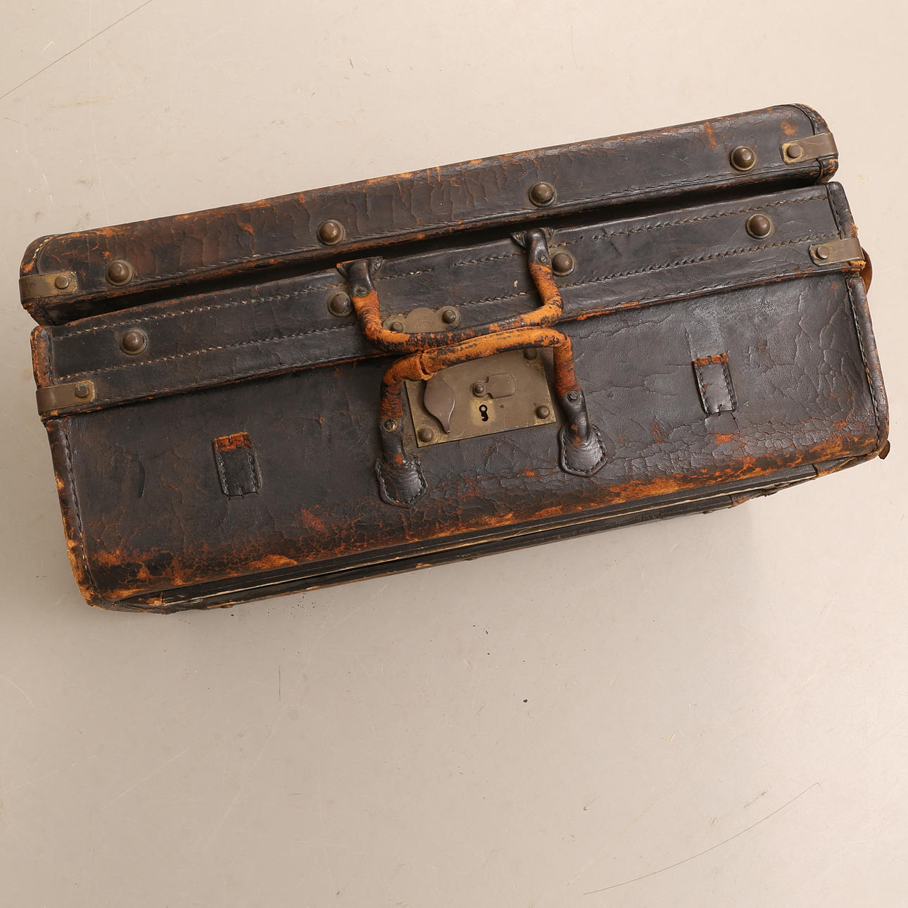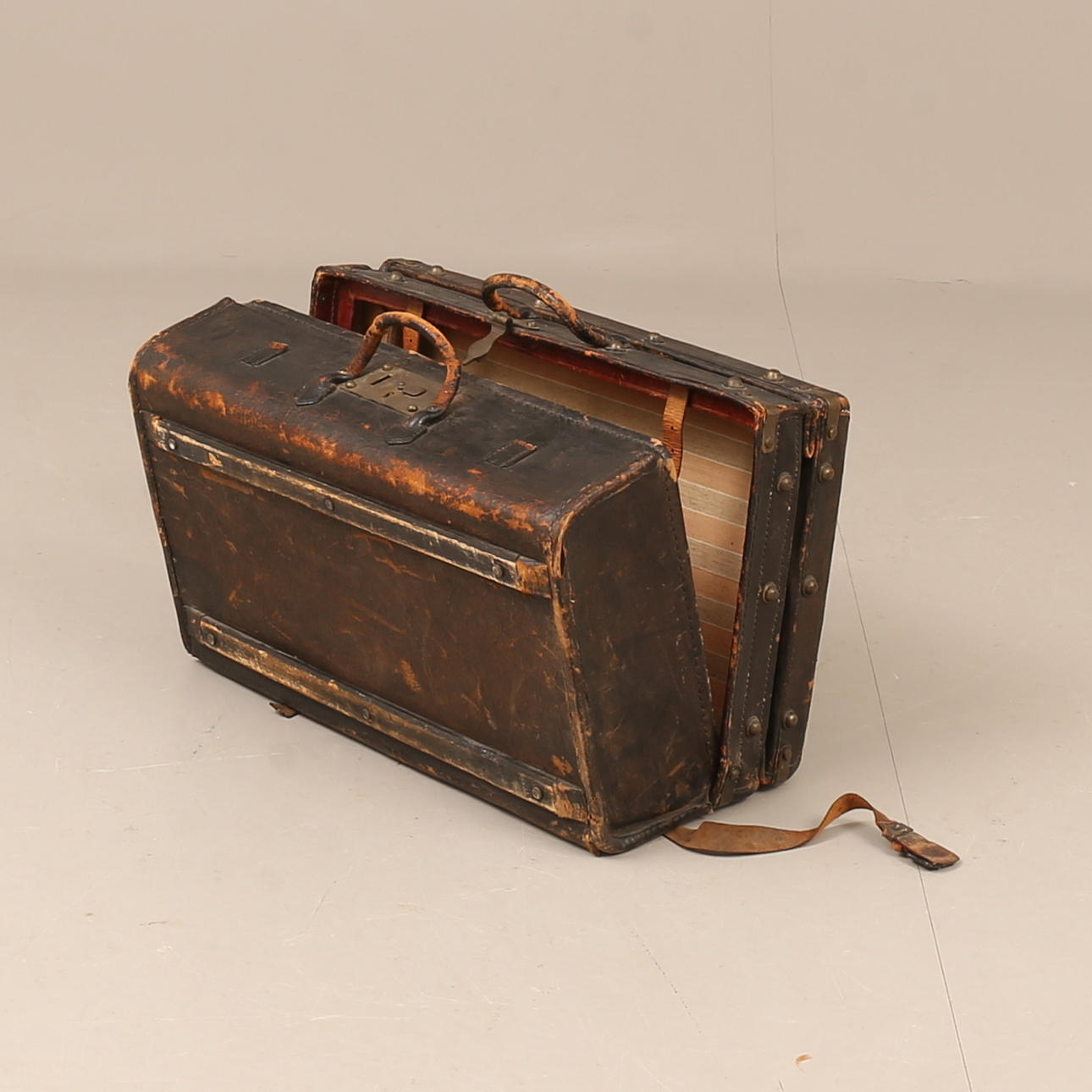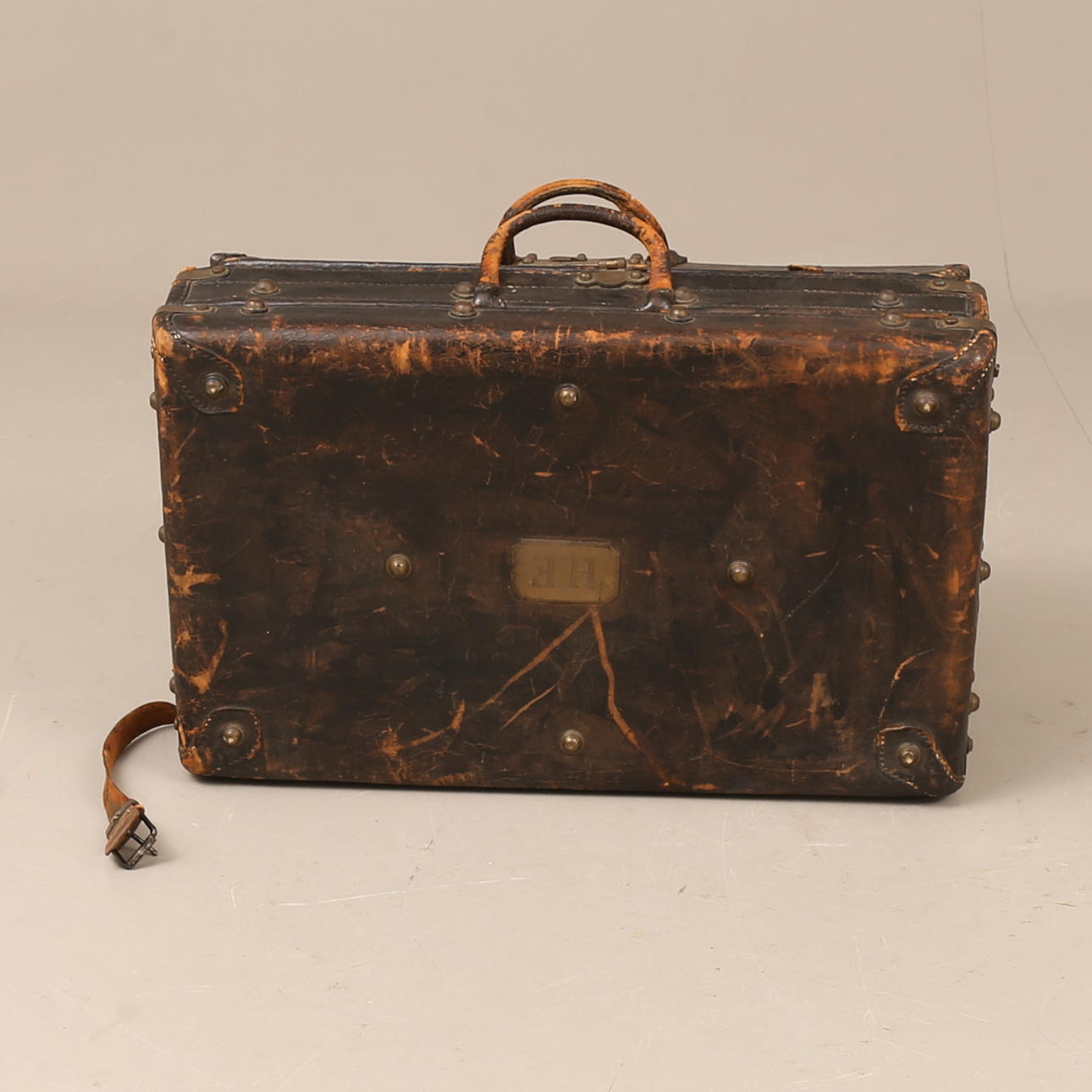 4952499. A leather suitcase, early 20th century.