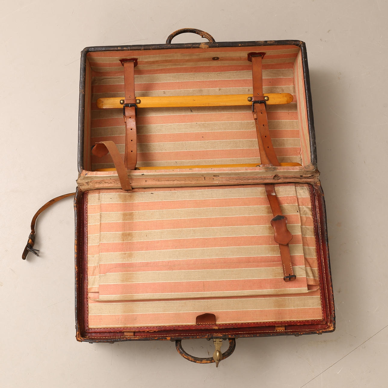 A leather suitcase, early 20th century.