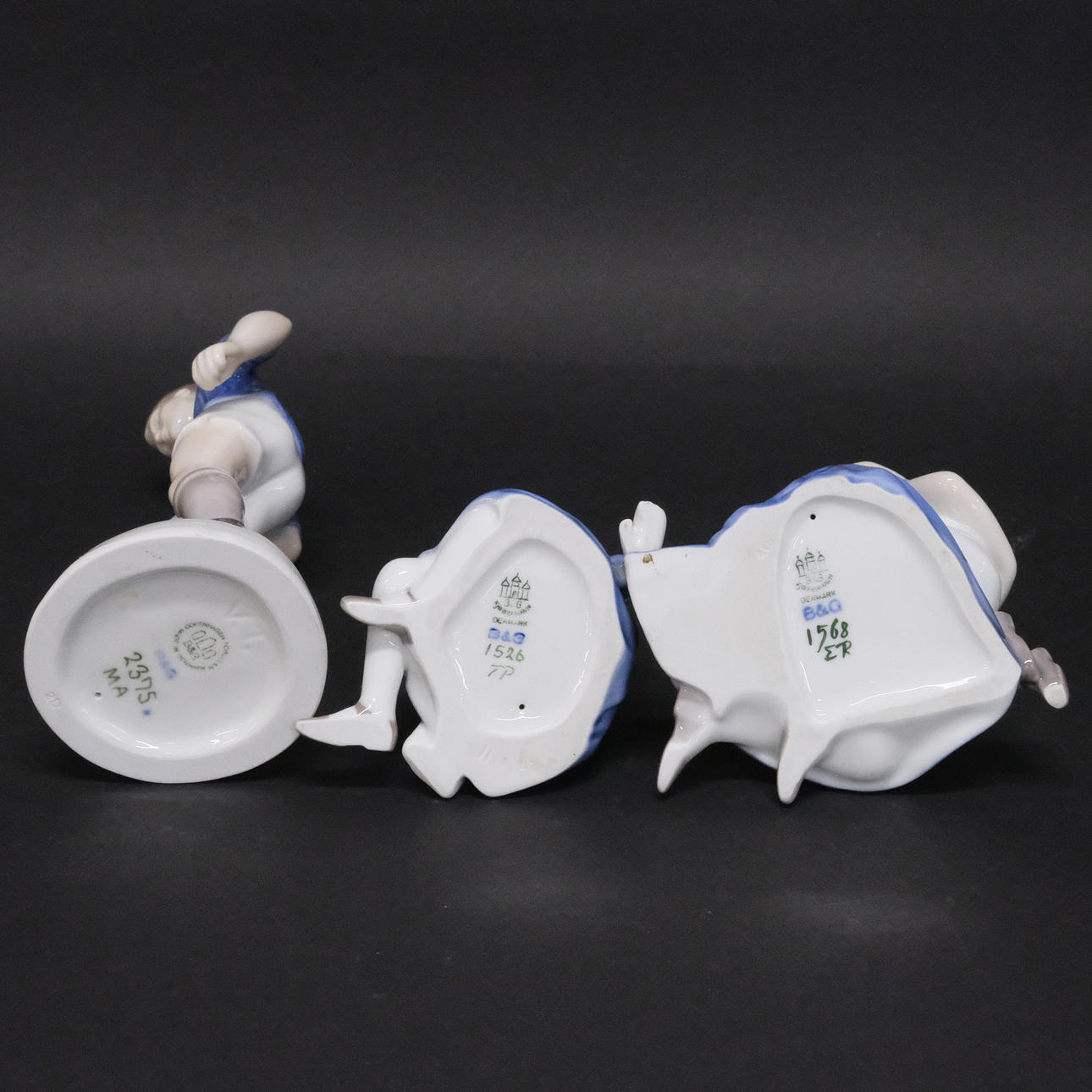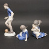 Boy with football, height 22 cm, Sitting girl with boy on her lap, height 11.5 cm, Sitting girl with doll, height 9 cm, I sorted.