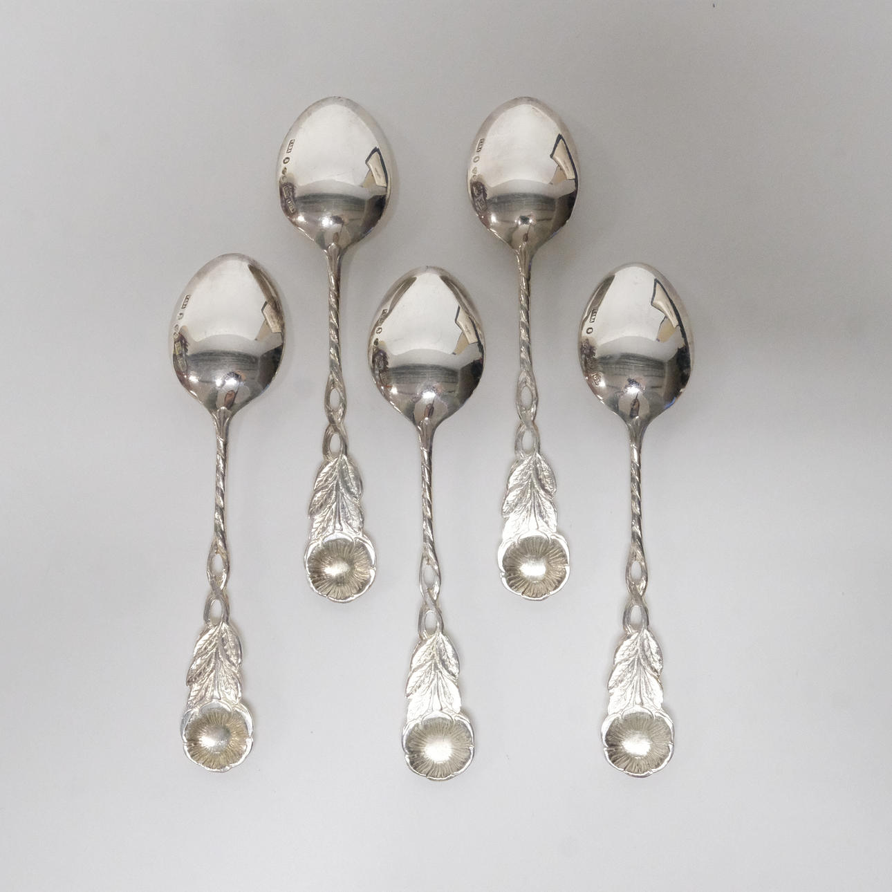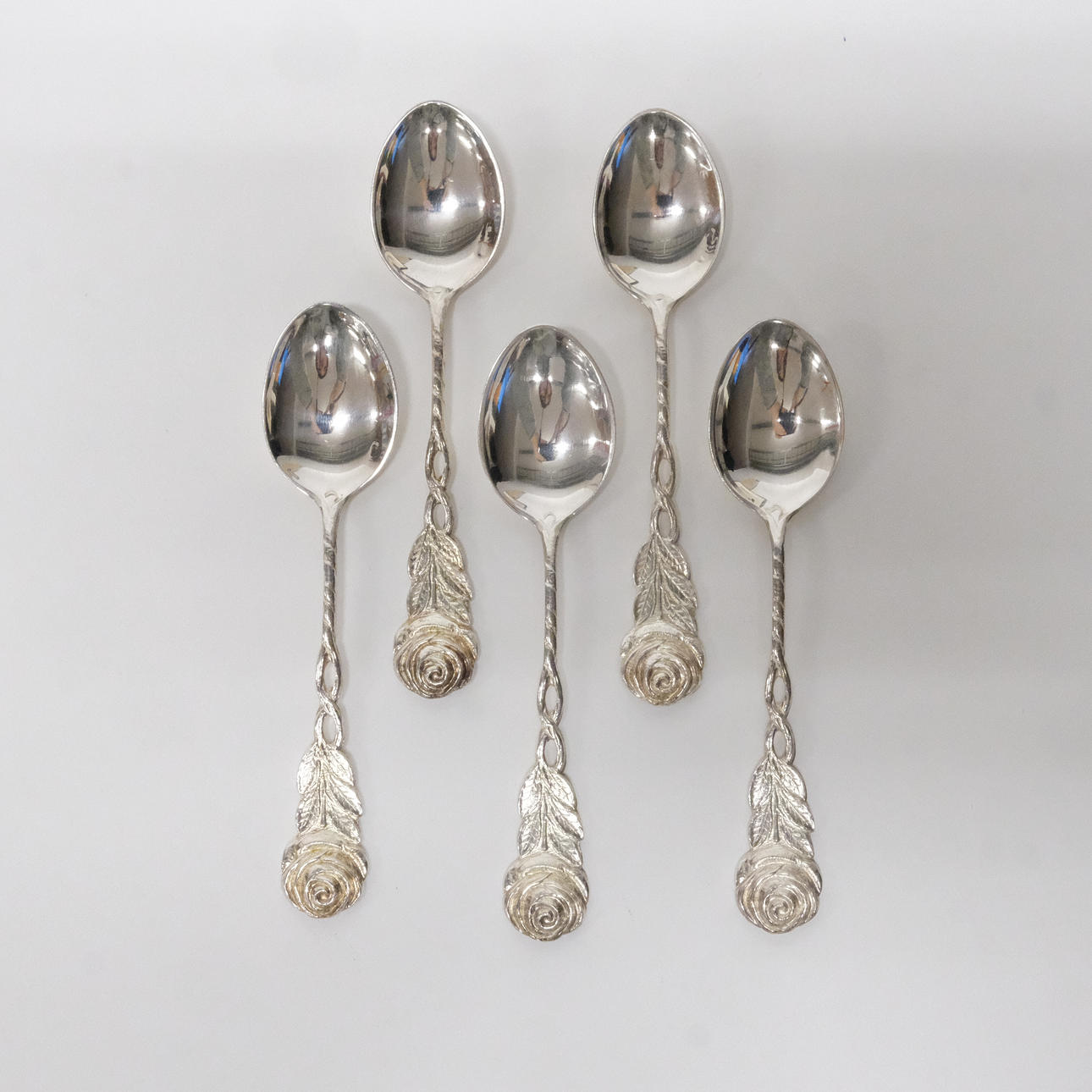 4953009. COFFEE SPOONS, “ROSE”, SILVER, 12 PIECES.
