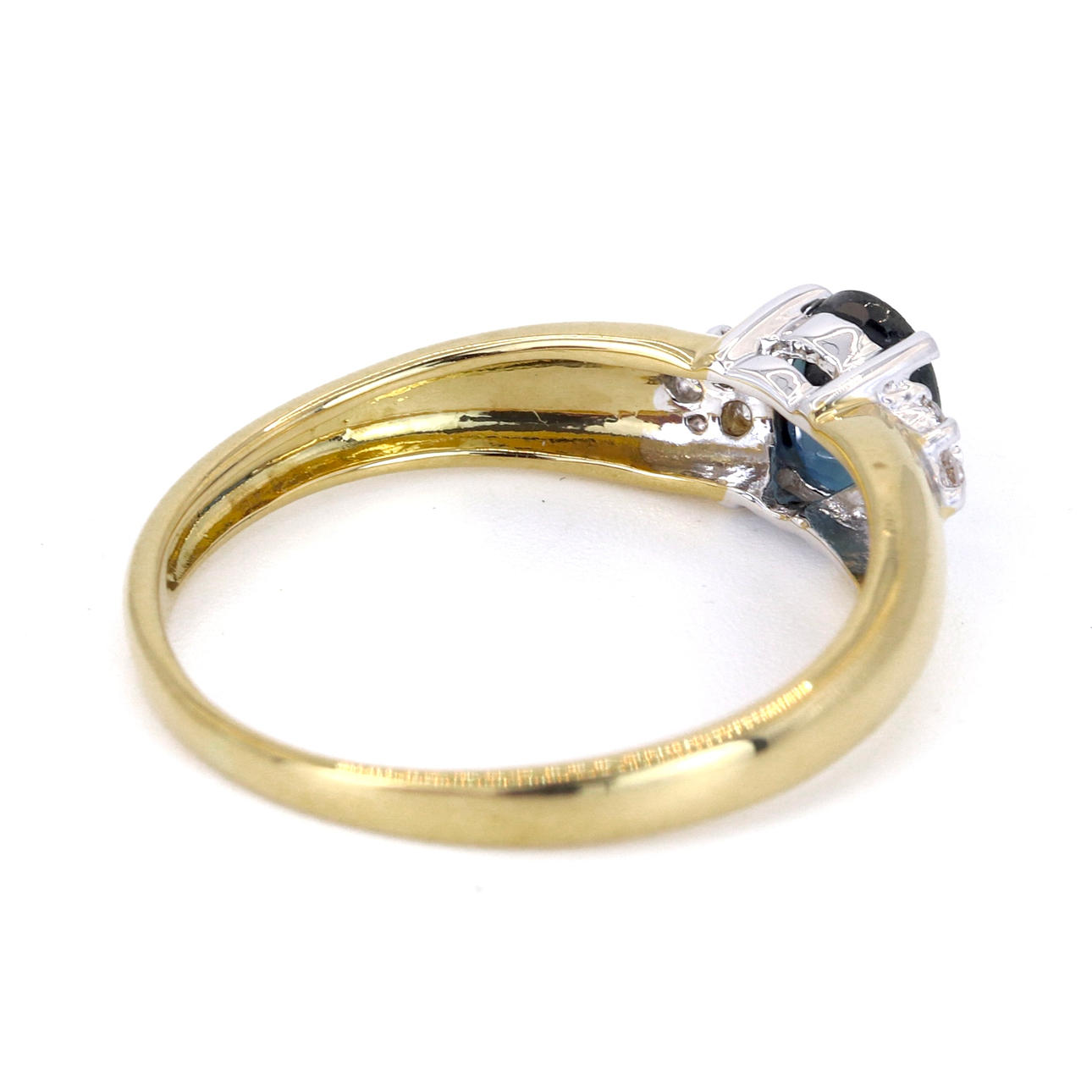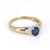 An 18ct yellow gold ring set with oval cut sapphire and diamonds on the sides.