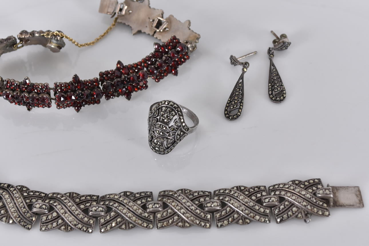 LOT JEWELLERY, 5 pieces, mostly silver.