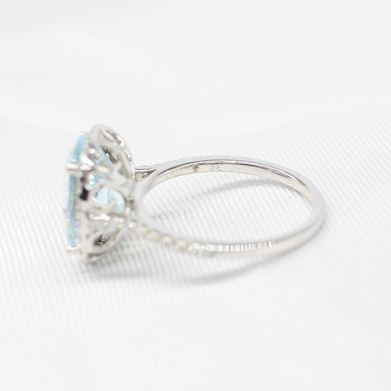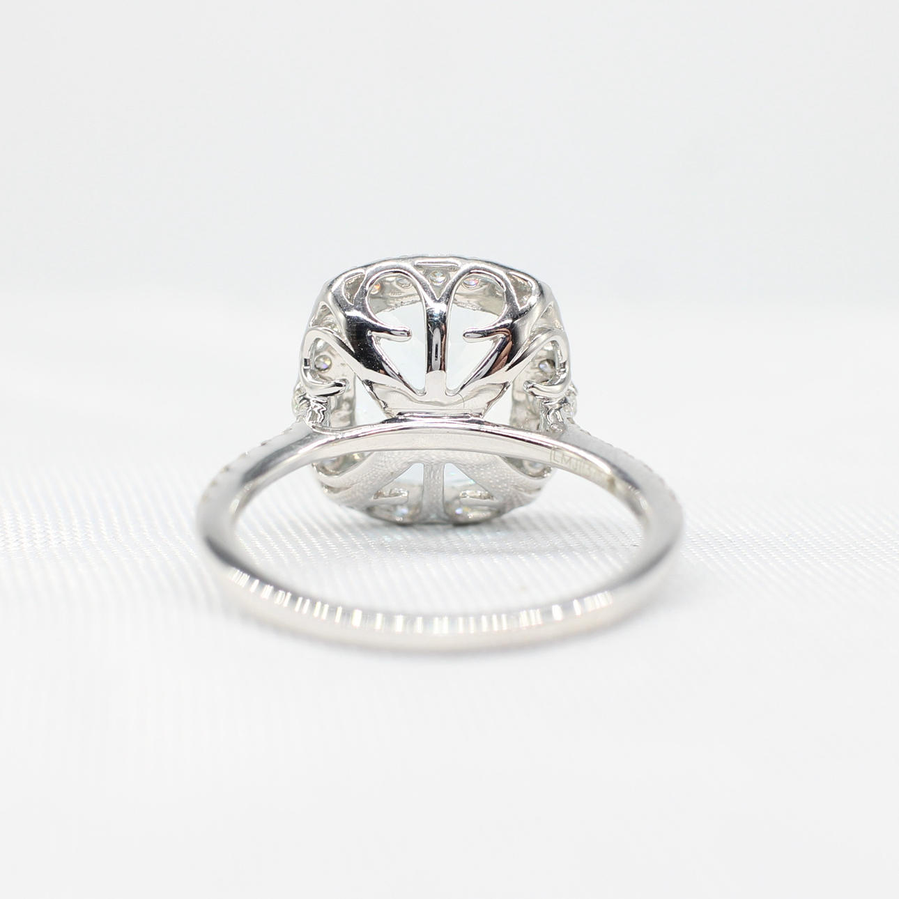 Diamonds continue down either shoulder of the ring