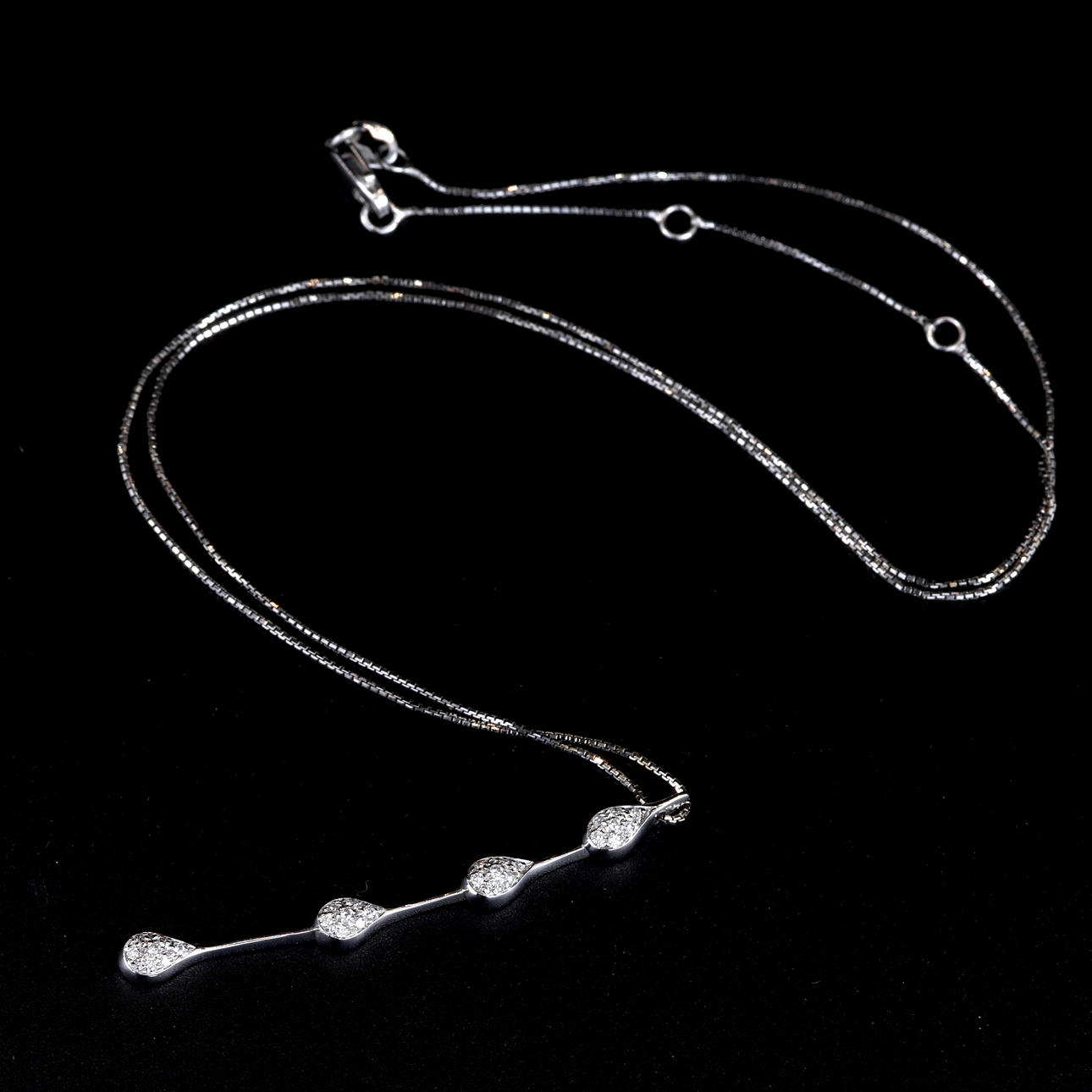 An 18ct white gold diamond set pendant on a 18ct white gold chain.