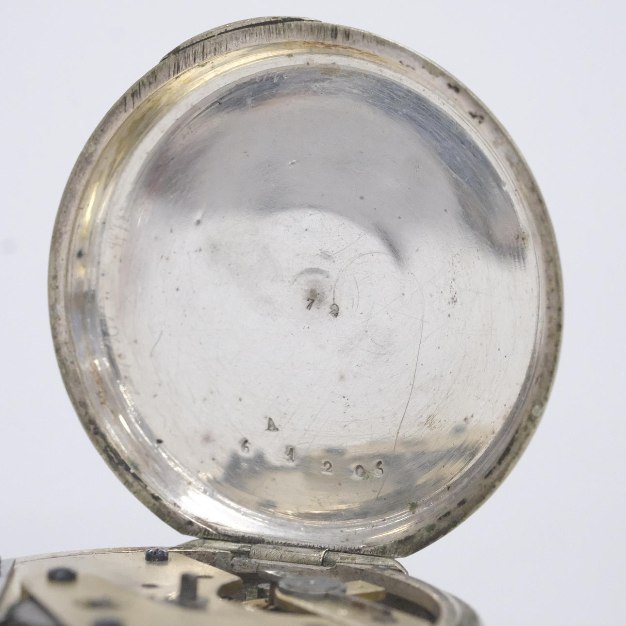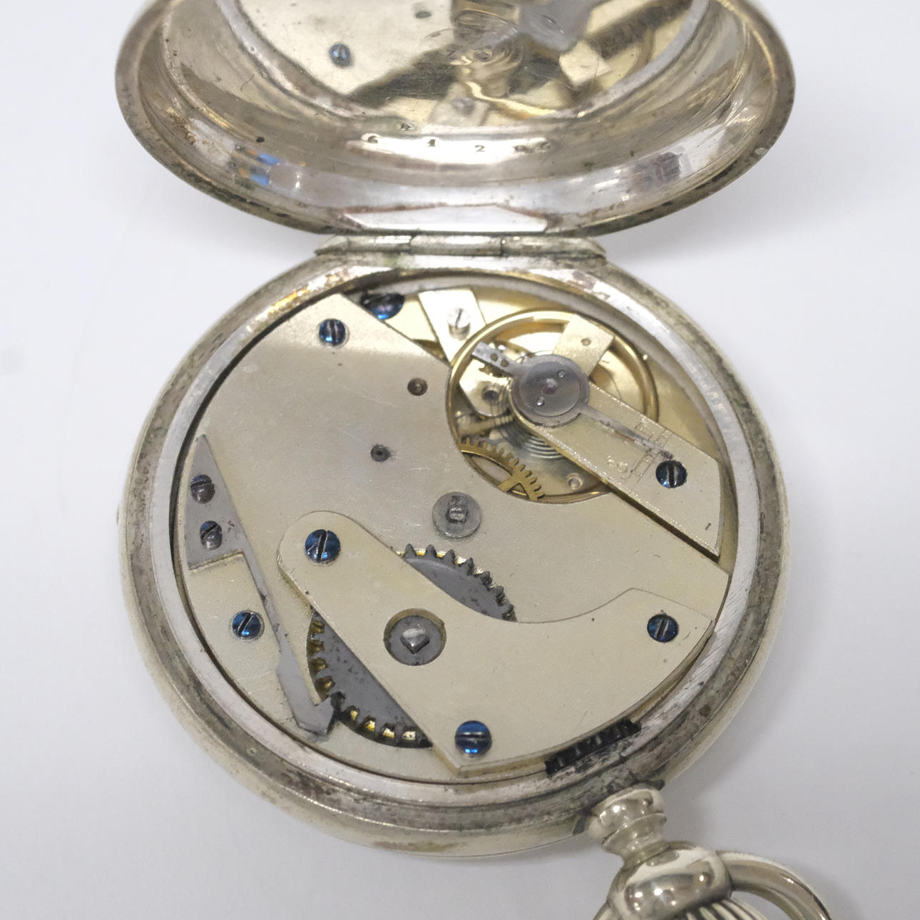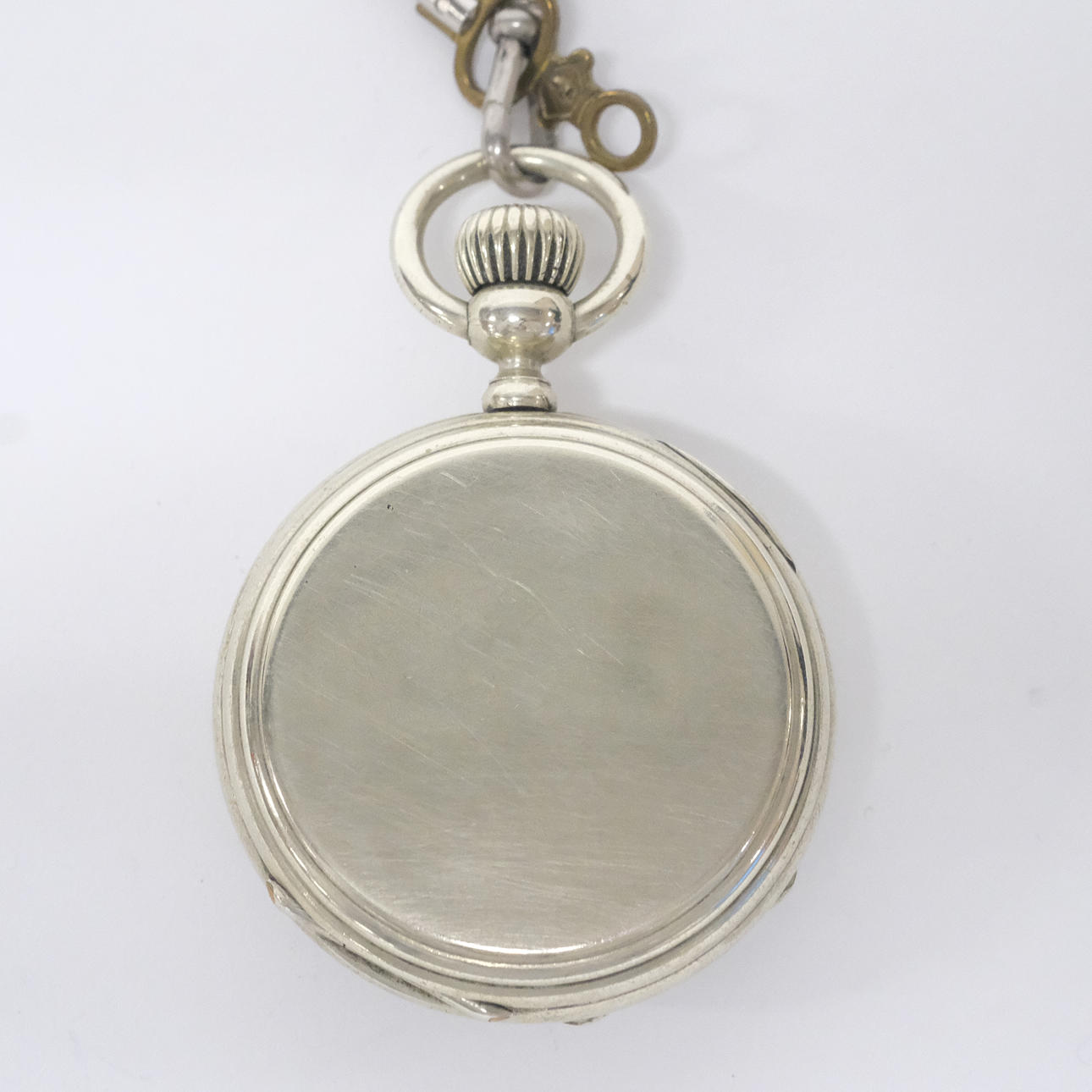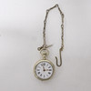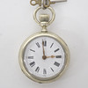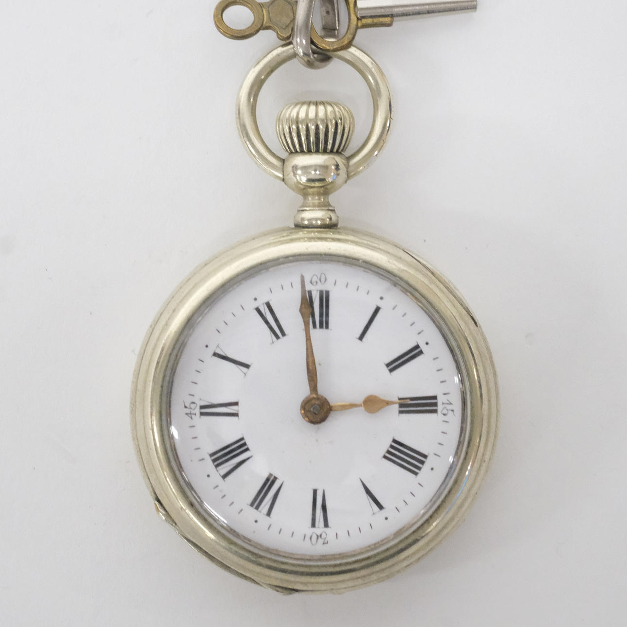 White metal. Diameter approx. 4,8cm. Watch chain, length 21cm.