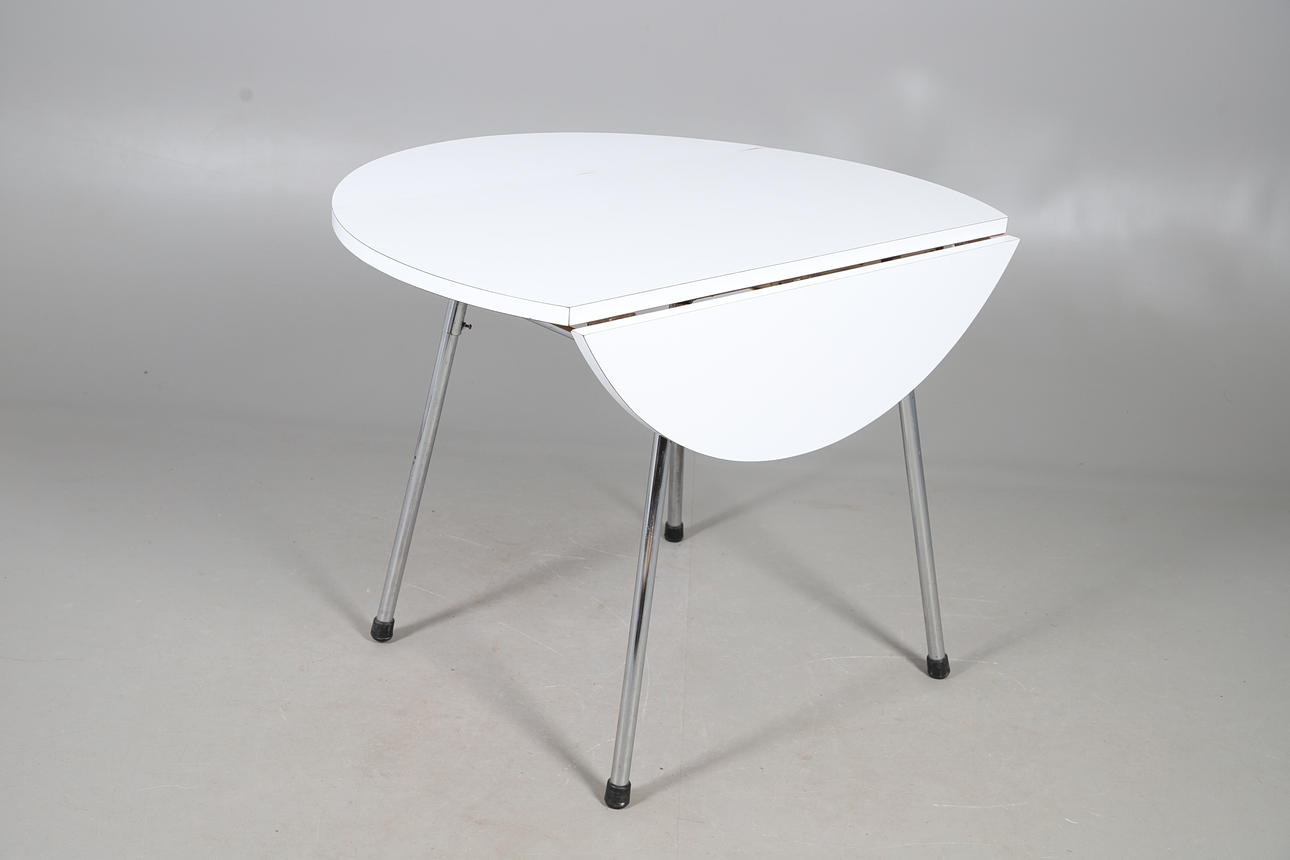 4953526. A 1960S/70S WHITE DROP LEAF TABLE.