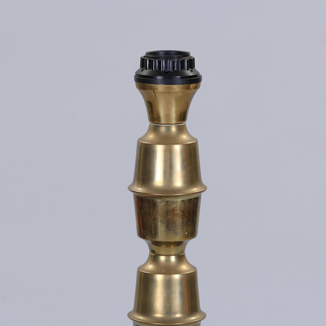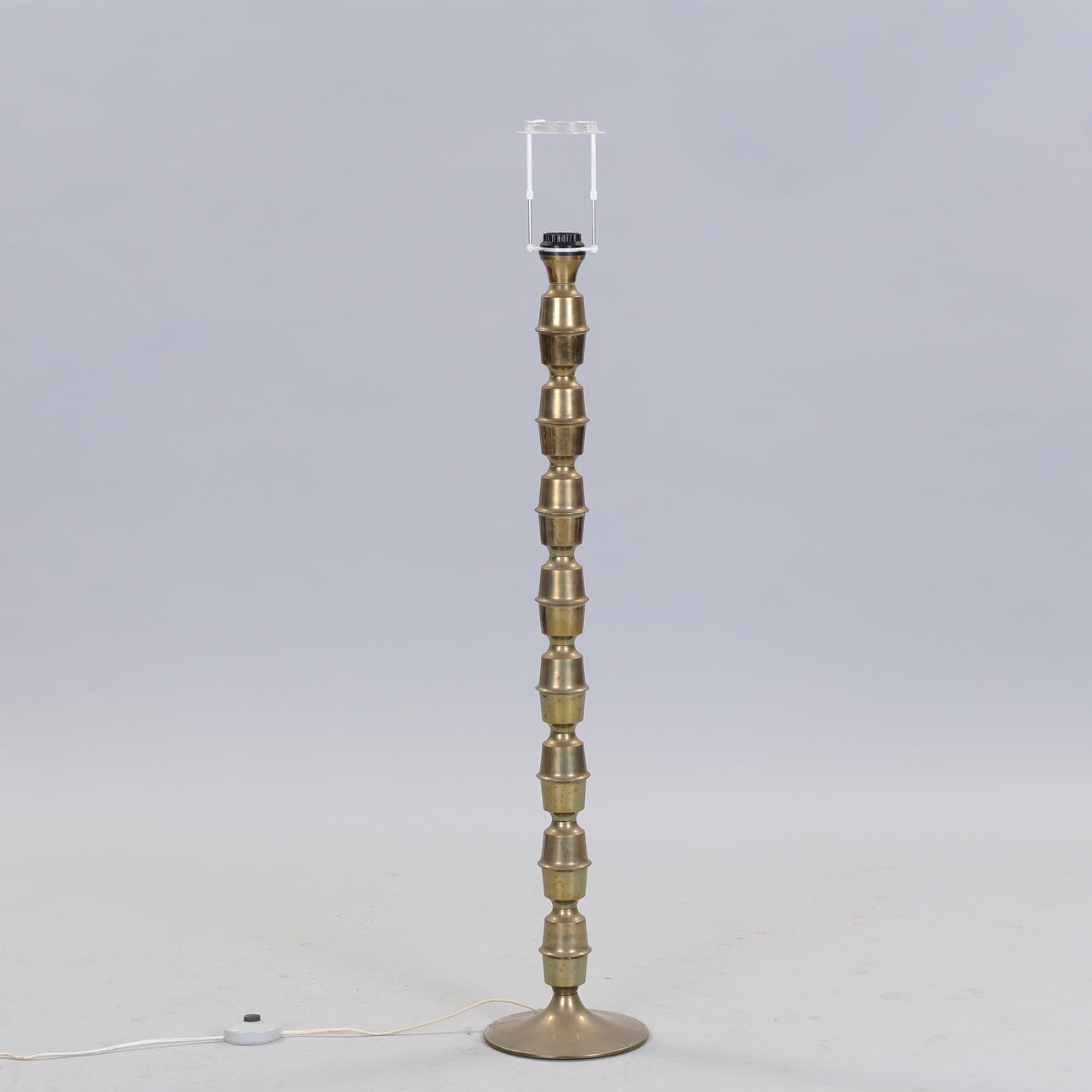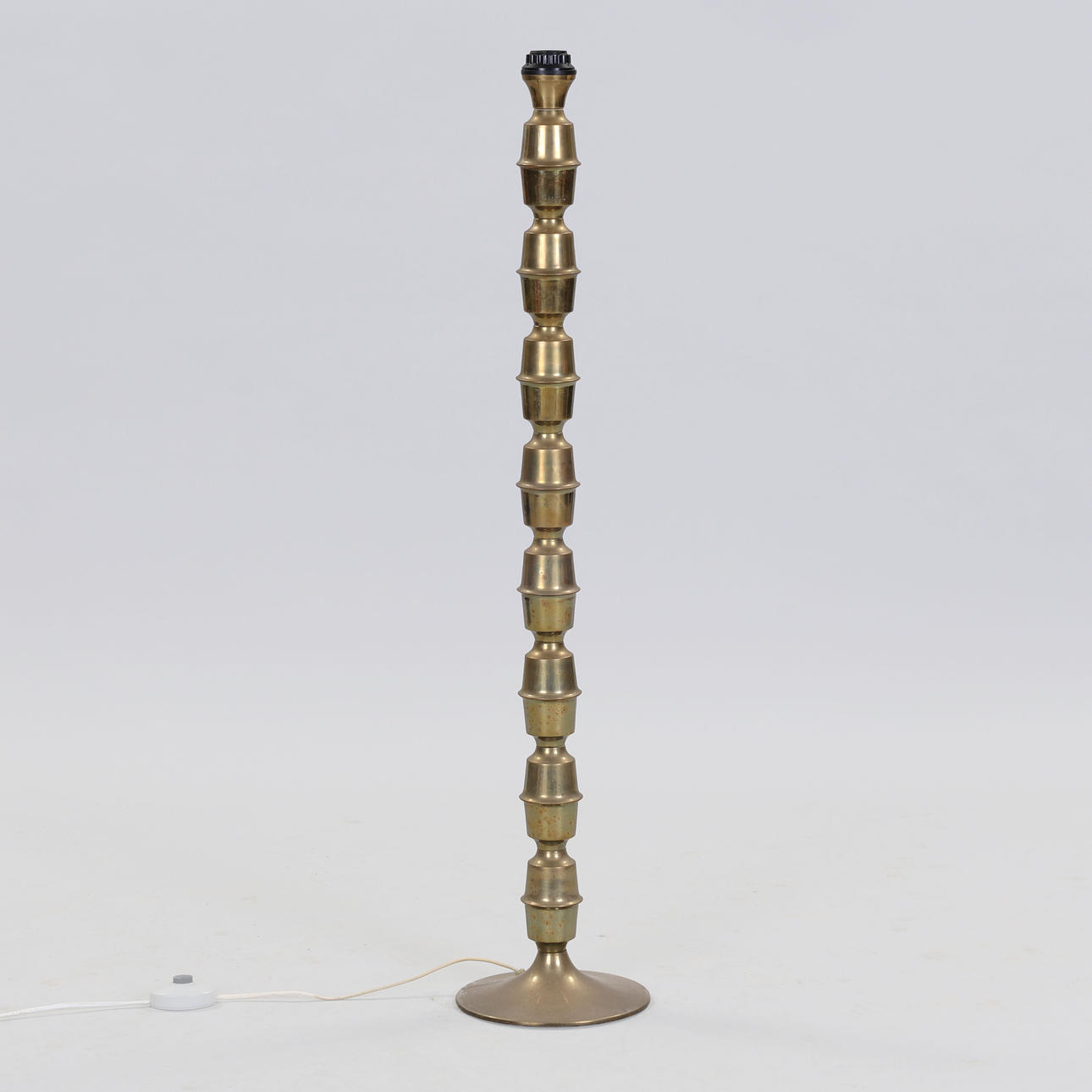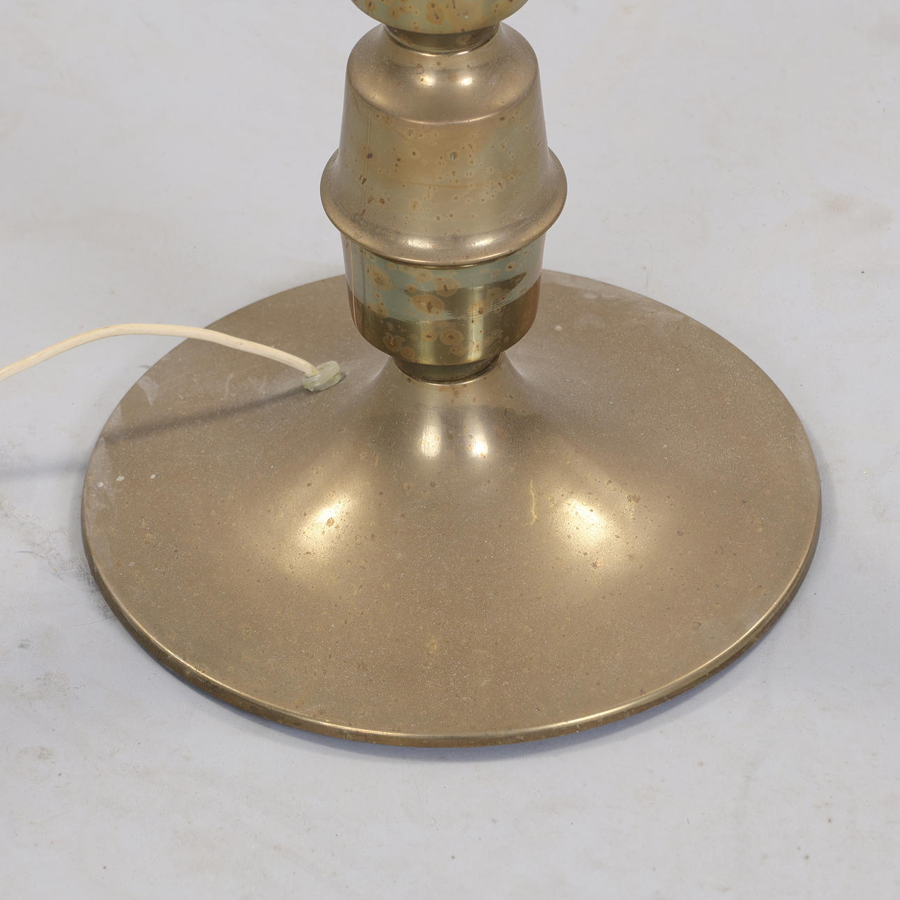 Brass floor lamp. Stem with partially polished and frosted brass. Height: 100 cm. Foot: 22 cm