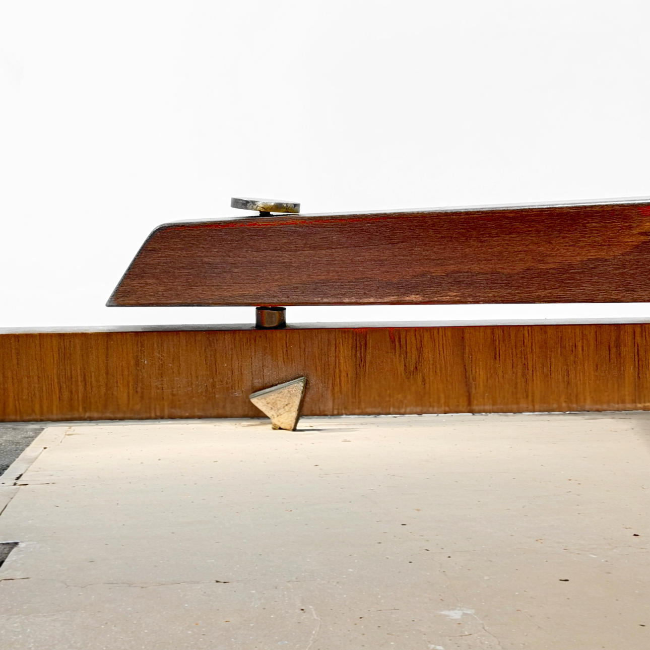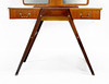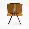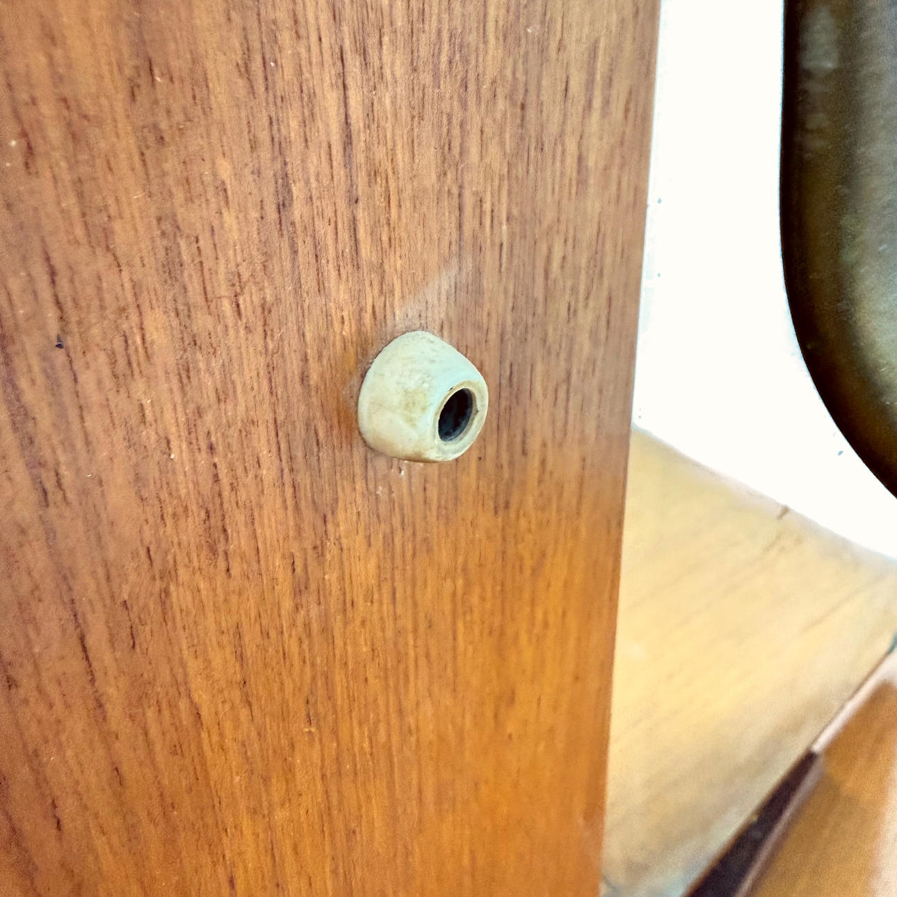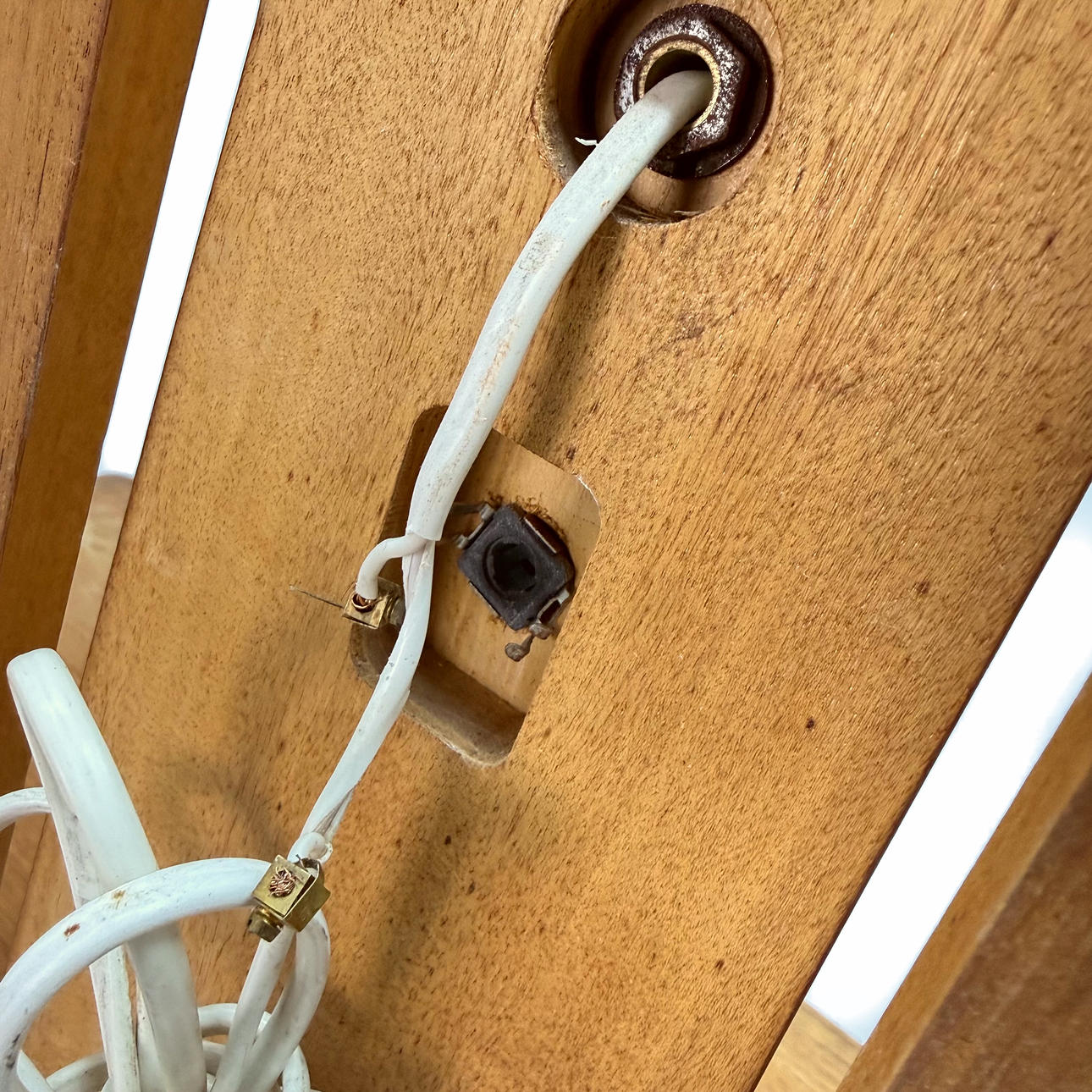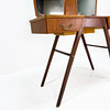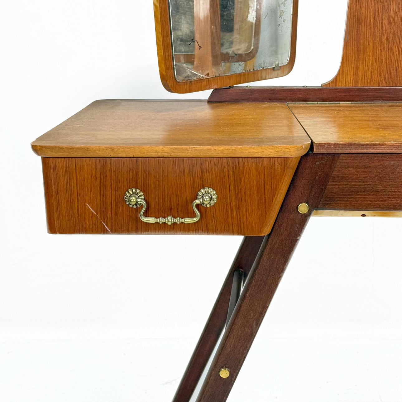 Age and wear and tear, marks on the top of the table. see picture. Lighting not tested, Missing button part, glass cup missing, Mirrors with rust.