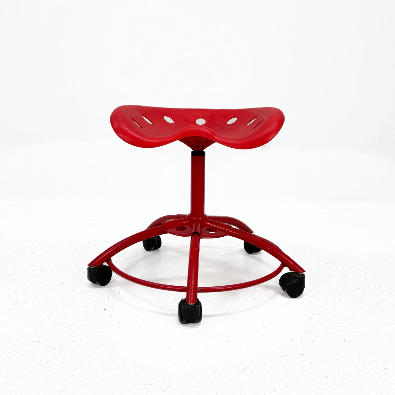 4953756. STOOL, plastic/red-lacquered metal, 20th century.