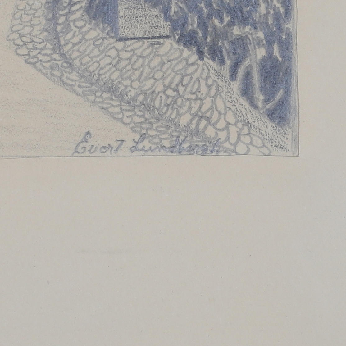EVERT LUNDBERGH. Drawing, “Strängnäs Kvarnbacken”, signed.