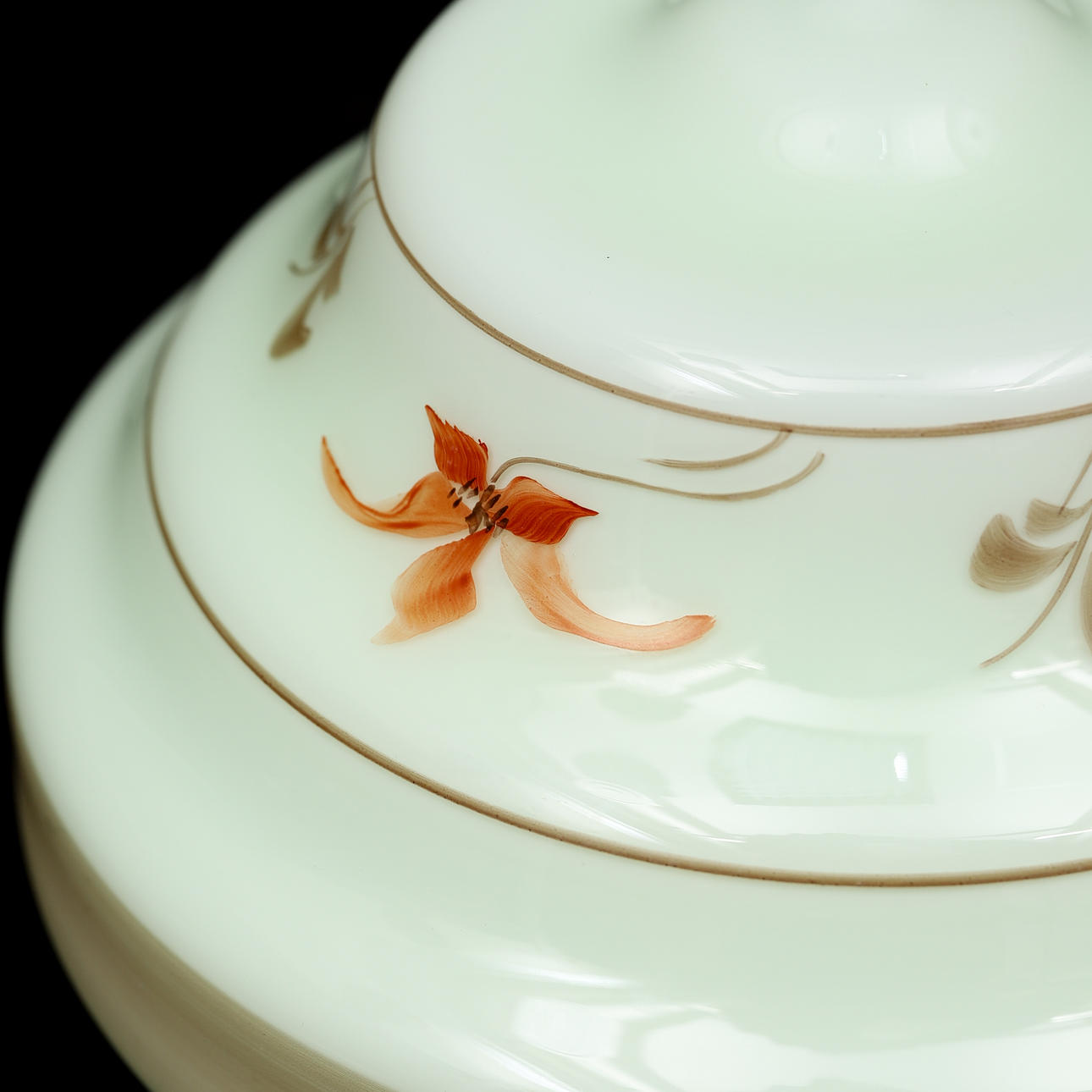 Ceiling cup made of chrome-plated metal. Cup made of glass with painted decor. Diameter approx. 20, height 19 cm.