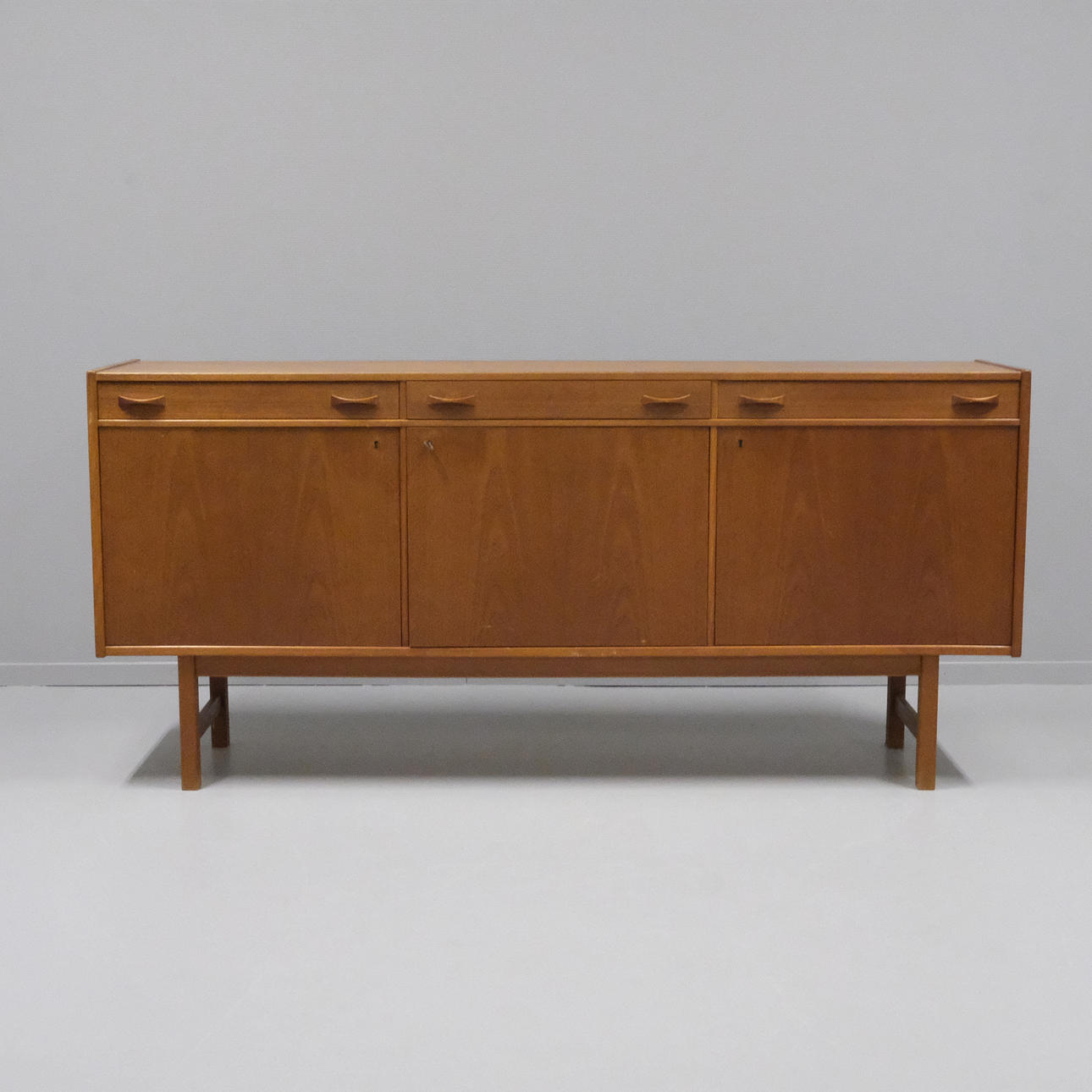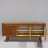 Three doors and three drawers. Height 85cm. Length 183cm. Depth 43cm.