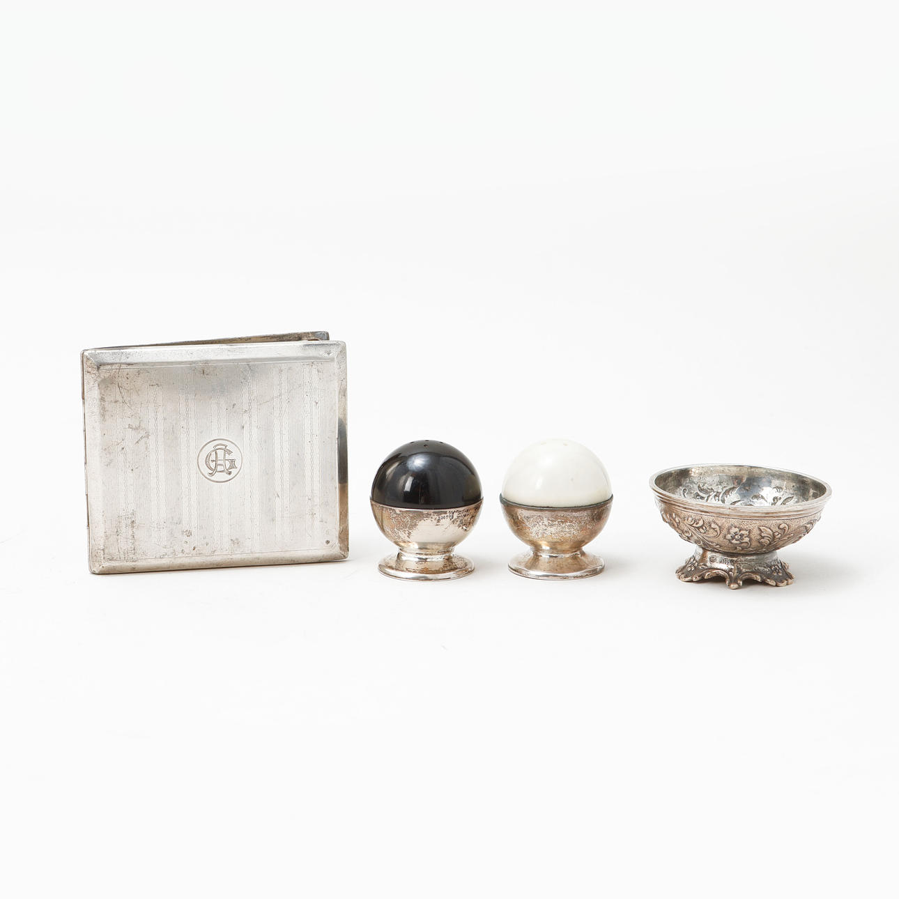 Case, beaker and spice jars. Length 4 - 9 cm.