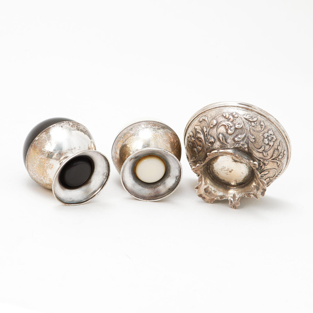 Spice bowls with inserts made of plastic. Engraving and surface wear.