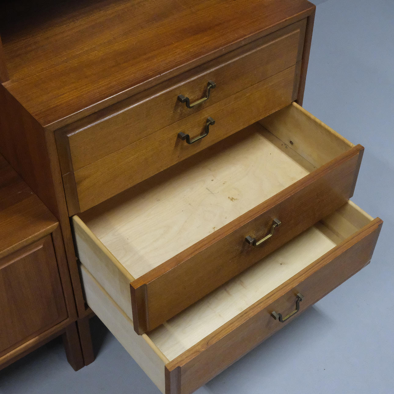 4954082. BOOKCASE, TEAK, THREE SECTIONS.