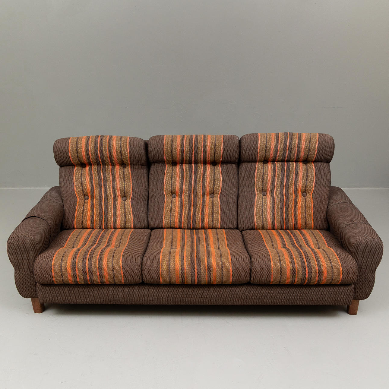 4954389. Sofa, 3-seater, striped upholstery, 1970s.