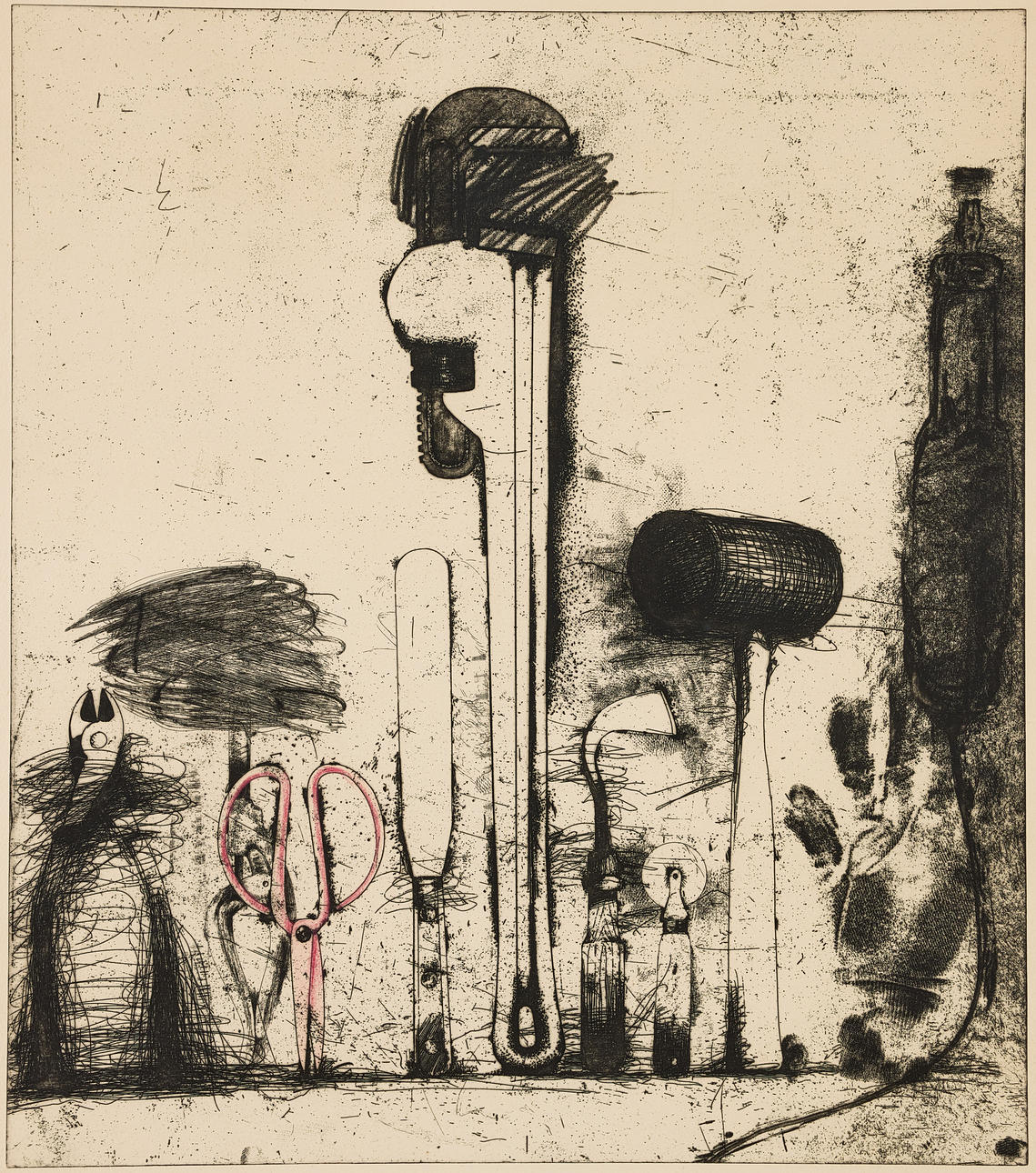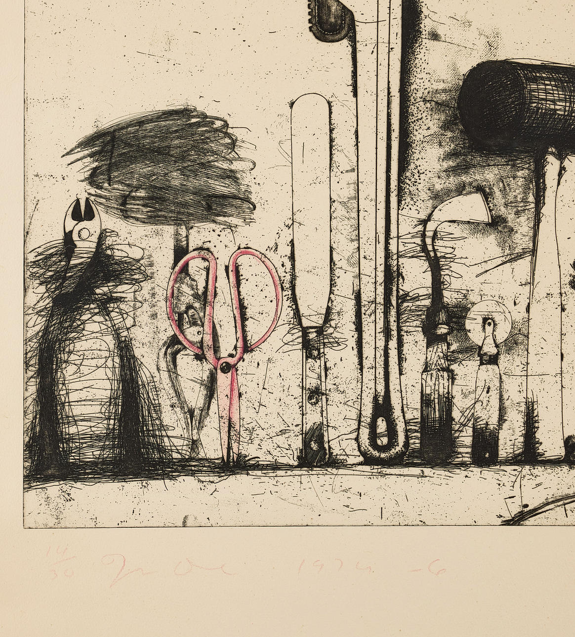 Etching with hand colouring, 1974-76, signed in red chalk (bleached) in the lower right corner and numbered in red chalk (bleached) 14/30 in the lower left corner.