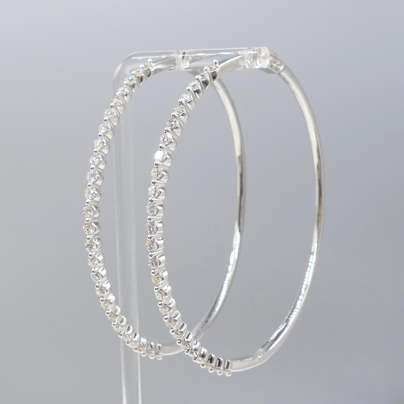 A stunning pair of very large white gold hoop earrings set with 4.00 cts diamonds, with gifting box