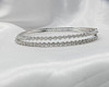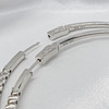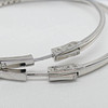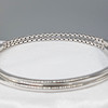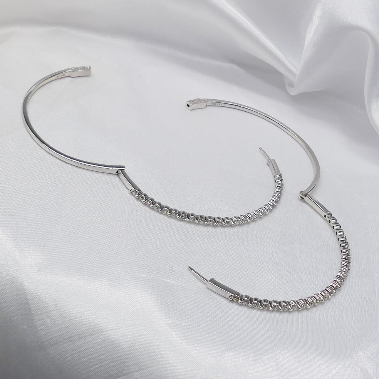 Hoops: 10k white gold as tested and stamped; 75mm diameter each; hinged sprung fittings with scroll pattern design; weight 30.1 grams