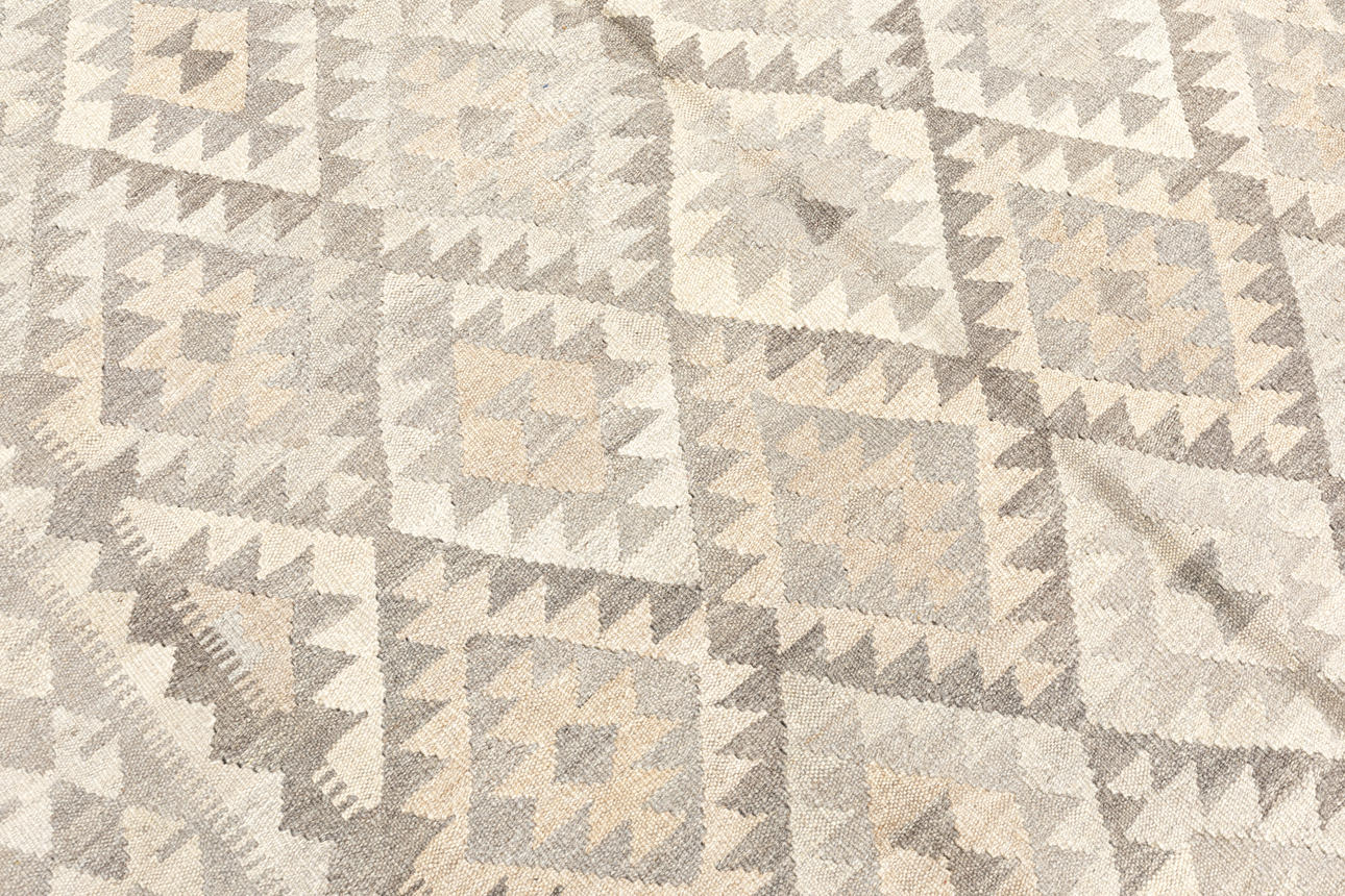 Grey and pale pink samellated geometric pattern, ca 237x169 cm.