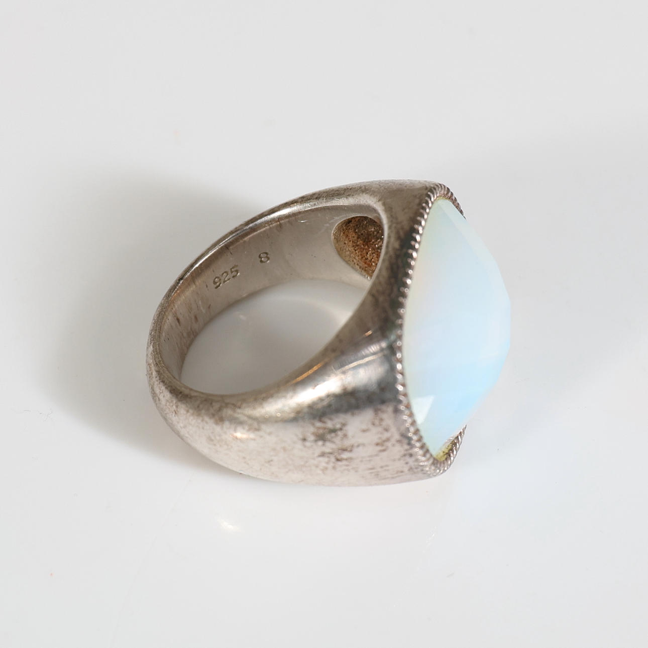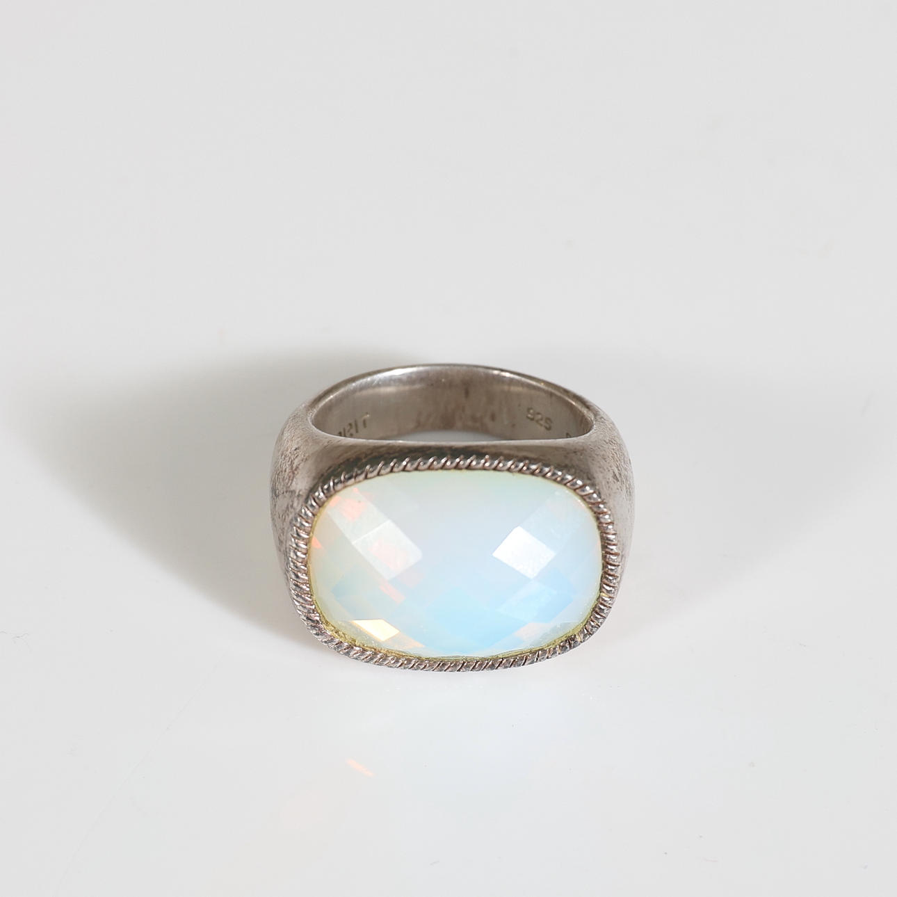 RING, sterling silver & moonstone. Total weight approx. 15.7 grams.
