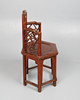 With a scroll and geometric pierced arched back, hexagonal seat, on 6 legs joined by stretchers, H.81.5 x W.52 x D.38.5cm overall.