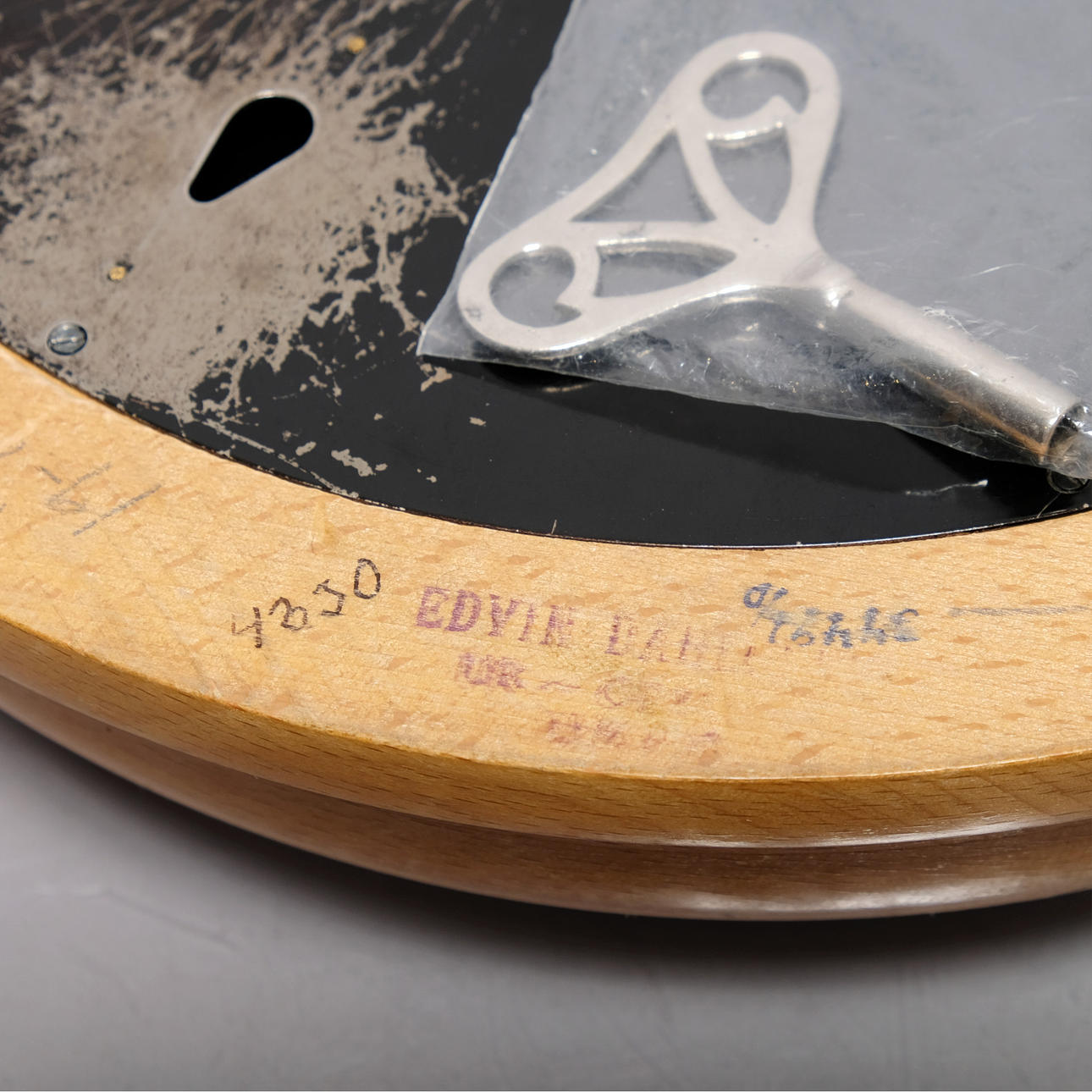 By the brand Kienzle. Probably 30/40s. In sheet metal, glass and wood. Assignment key included.