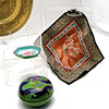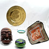 Hand carved Oriental wall mask, cloisonne lidded box with dragon detail (11cm & internal rim buckled) etc.