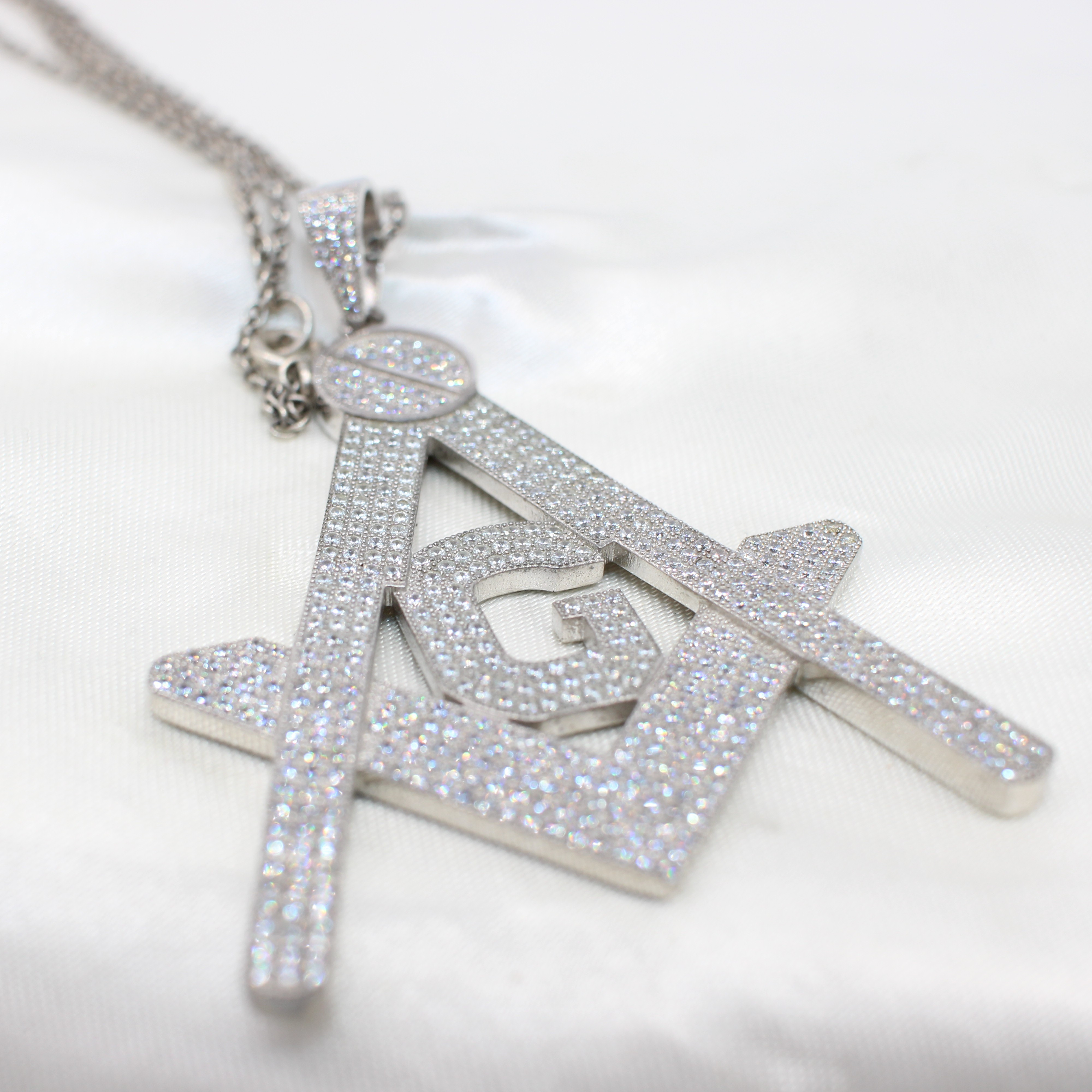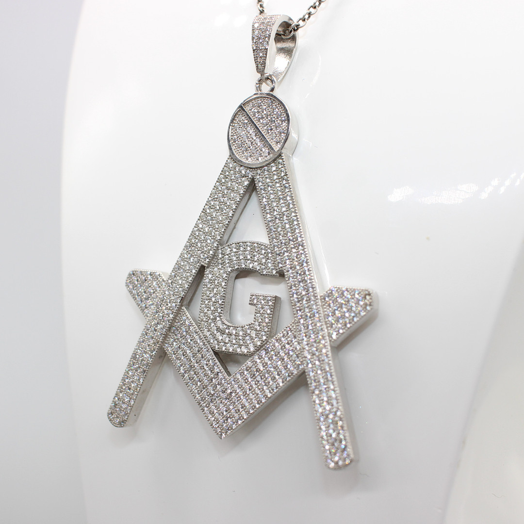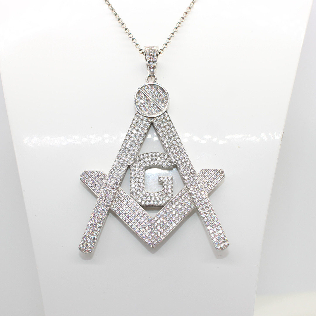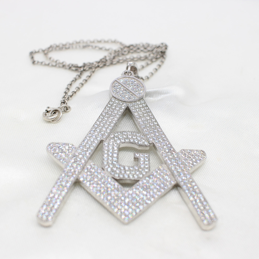 4956457. LARGE SILVER MASONIC NECKLACE.