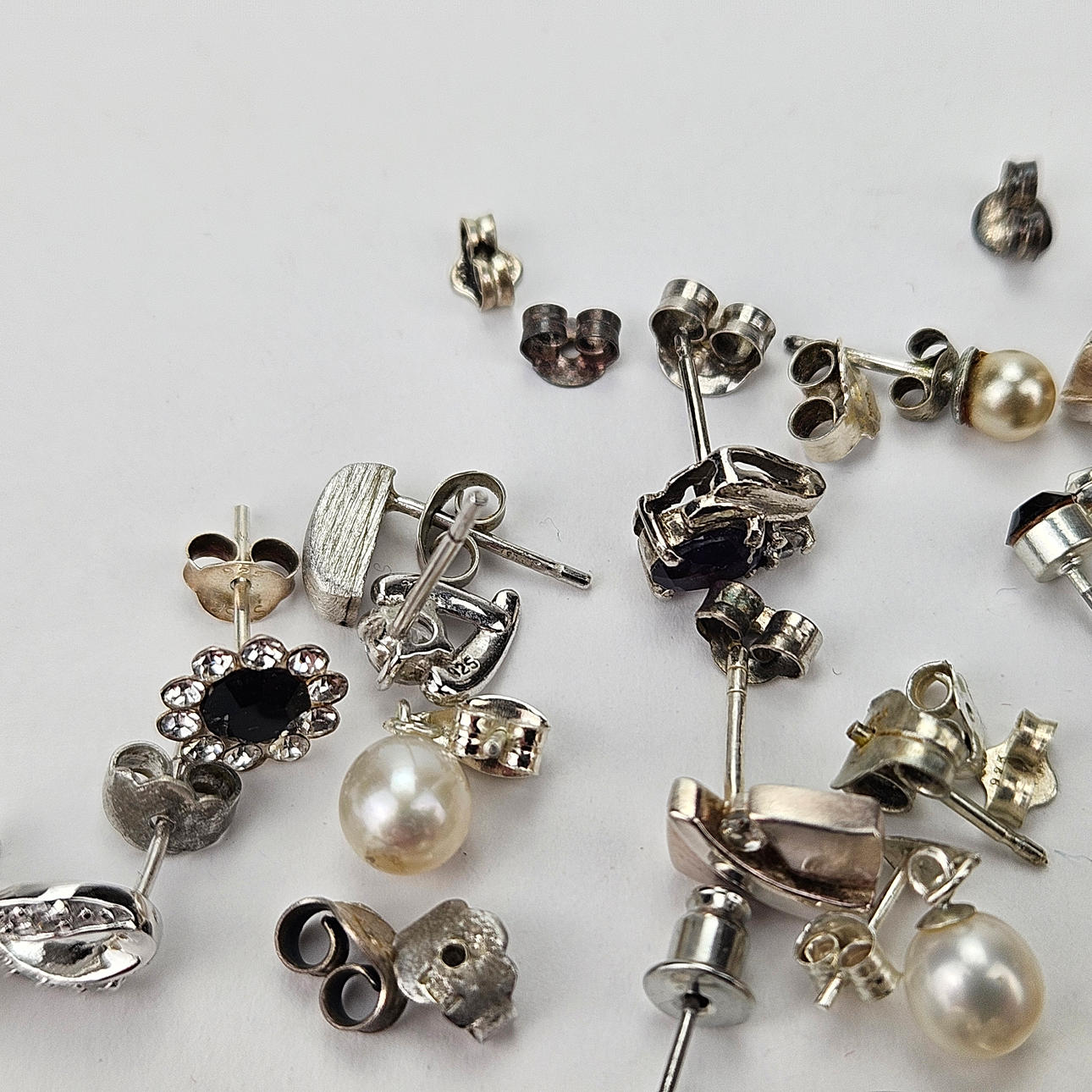 Ring, not stamped. Earrings, different sizes, partly with synthetic stones.