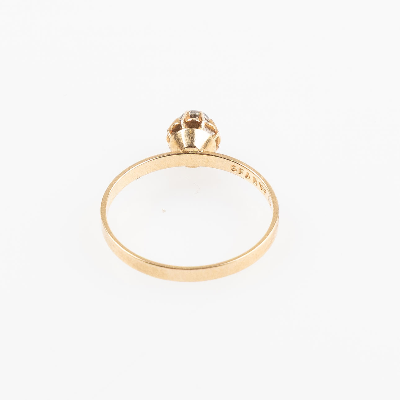 Set with small eight-cut diamond. Ringstrl. about 16 mm. Weight about 1.1 grams.