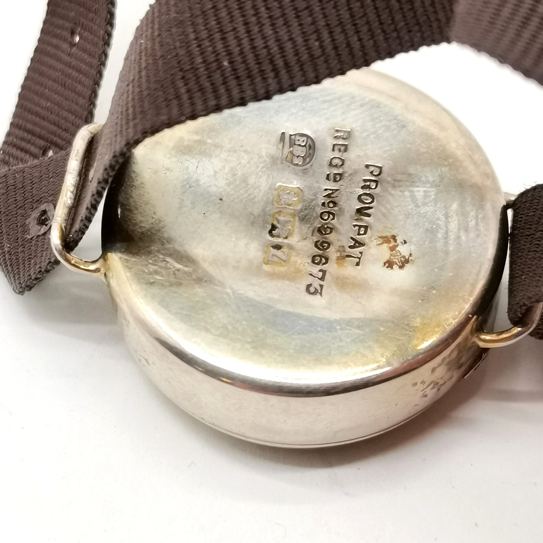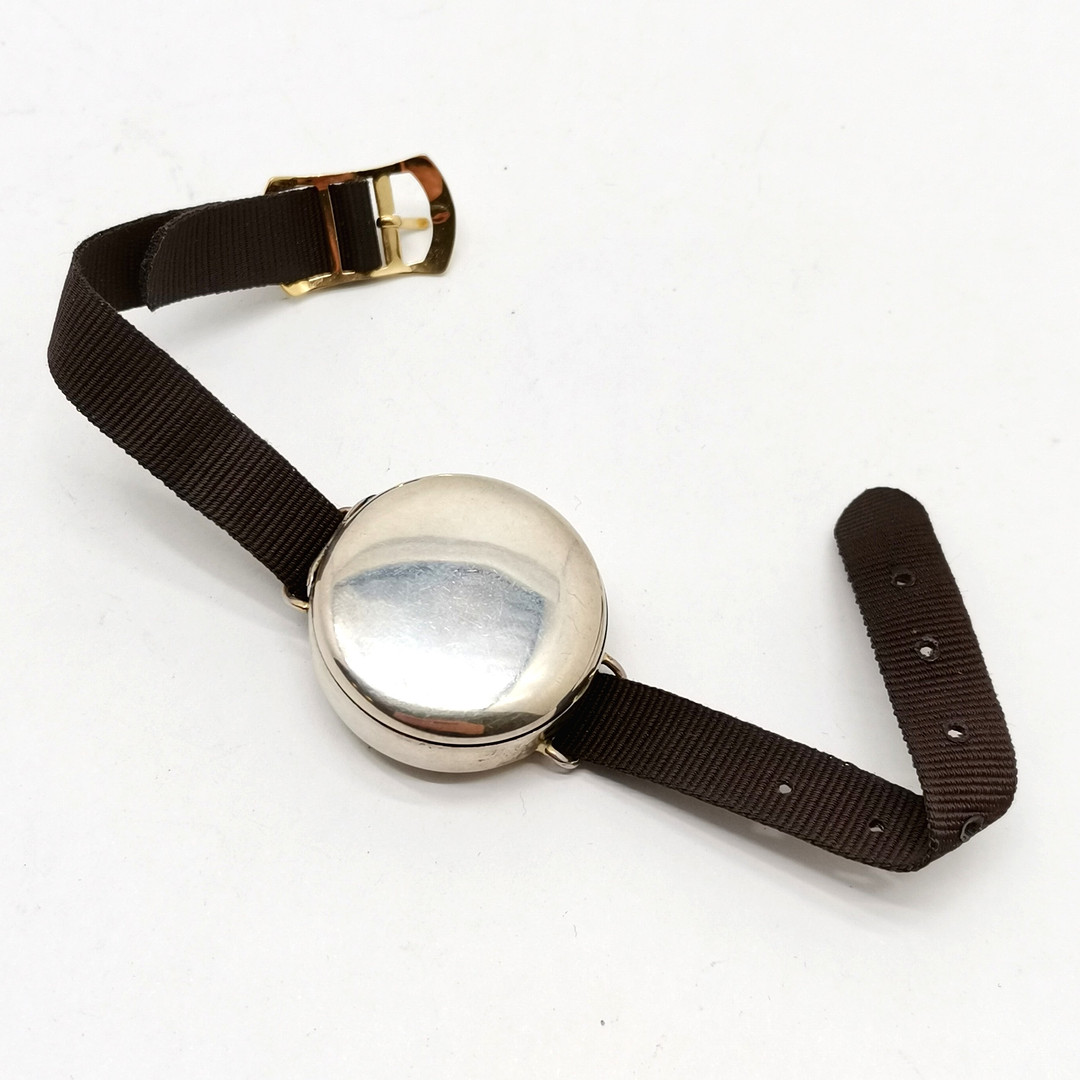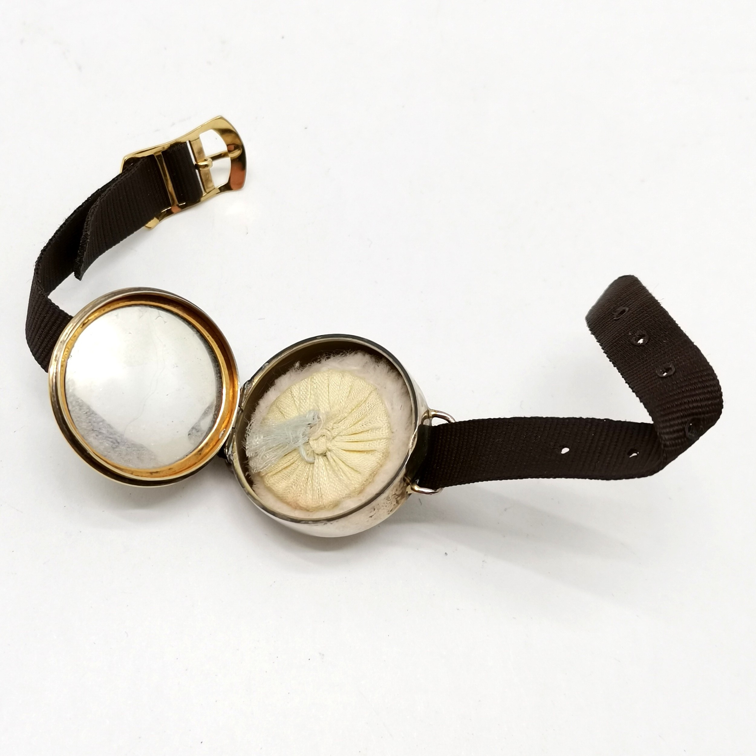 4956676. SILVER SMALL WRIST COMPACT ON FABRIC STRAP.