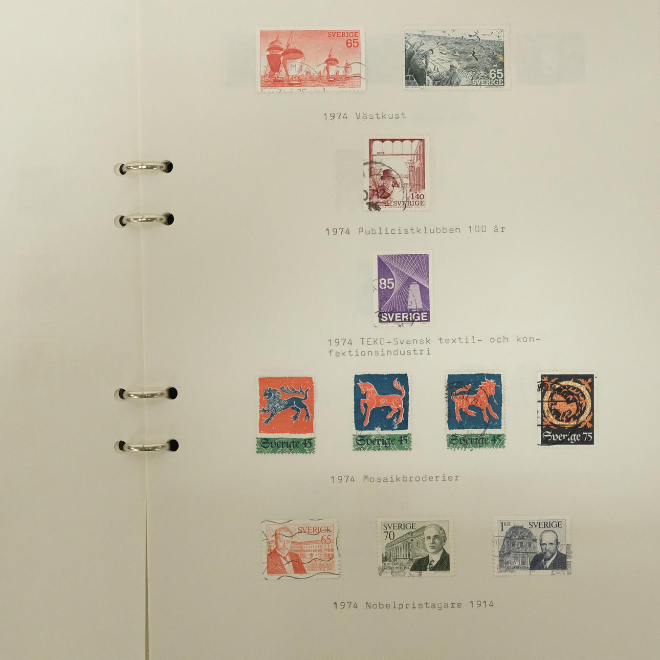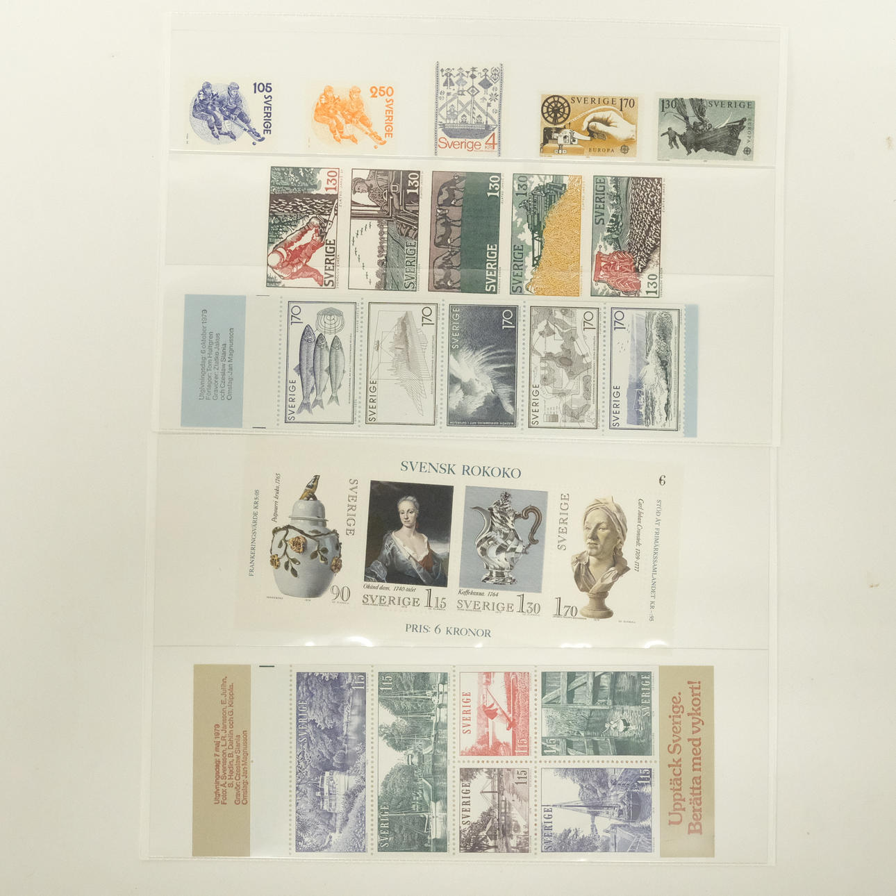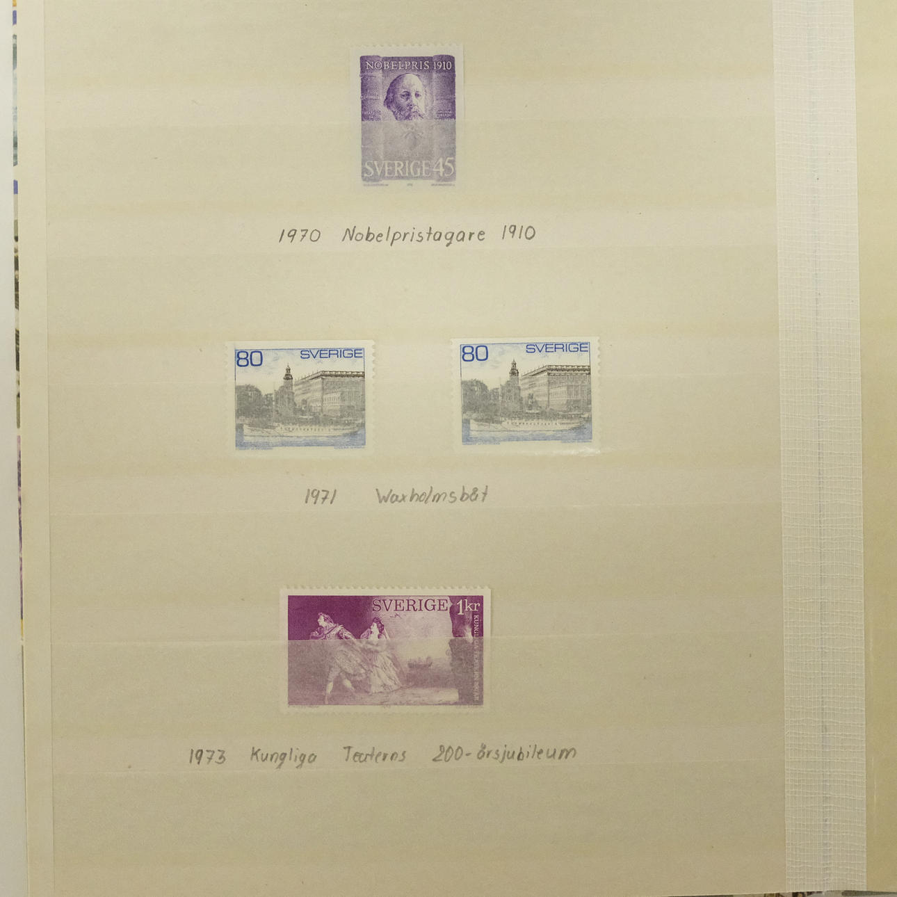 Posthealthy stamps, face value approx. 920 SEK. as well as albums with stamped Swedish stamps.