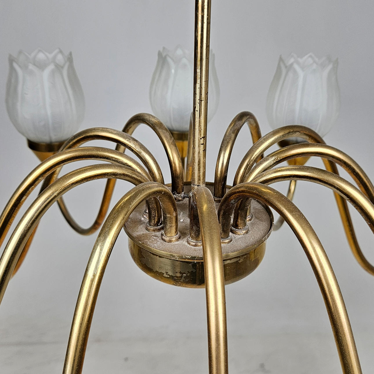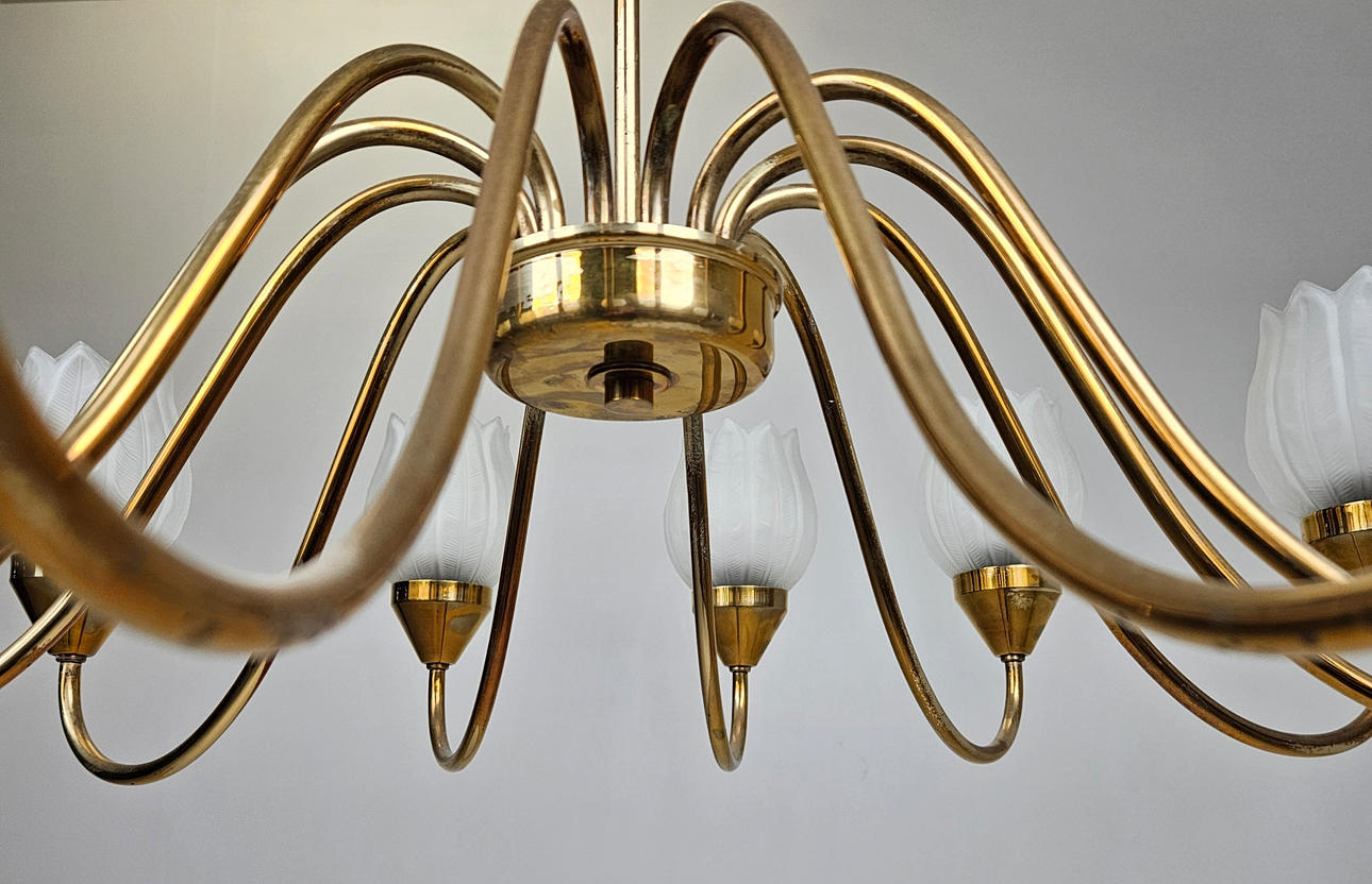 12 light arms with glass cups. Diameter approx. 80 cm.