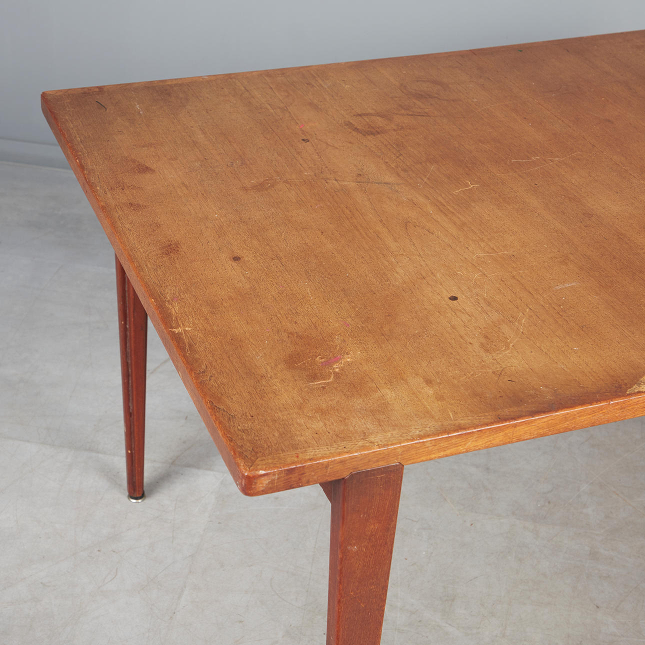 Age-appropriate signs of use and rubbing, bumps, scratches, stains, partial wood abrasion.