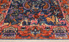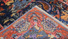 Figural Zigler with dark blue base color and figural decor in pink, red, beige and light blue. The center field is decorated with figural scenes with animals, plants and water motifs. The border has a red base decorated with stylized floral and palmette motifs. The forelock is made of wool and the warp is of cotton.