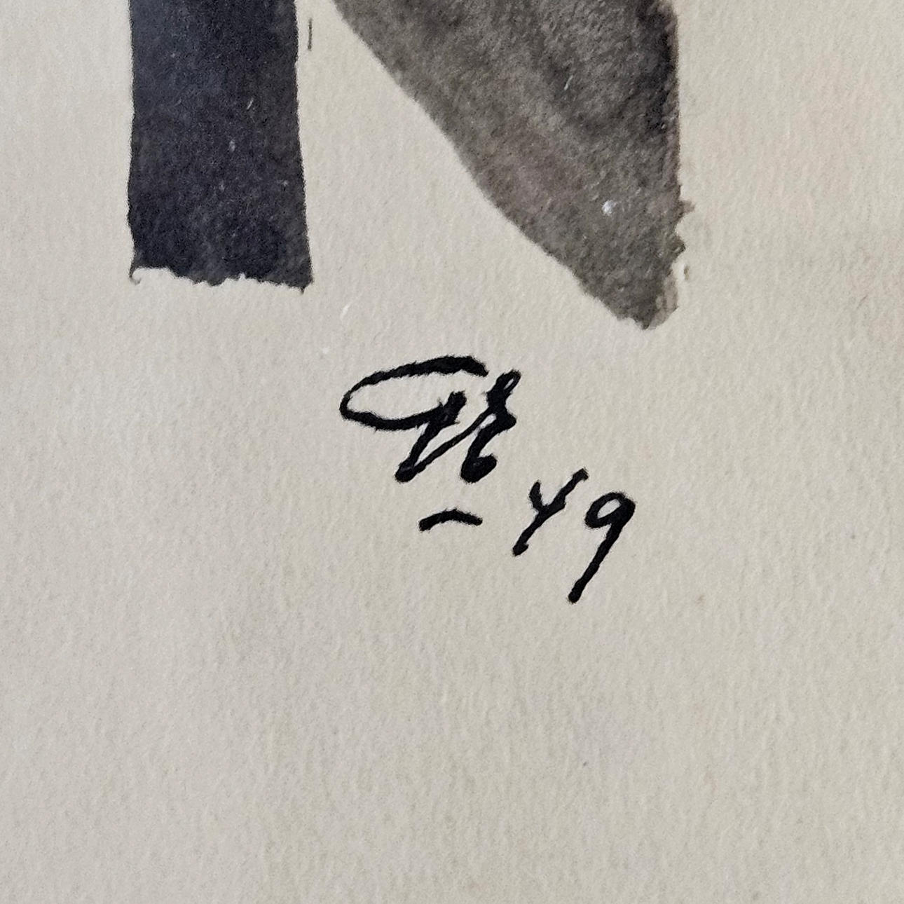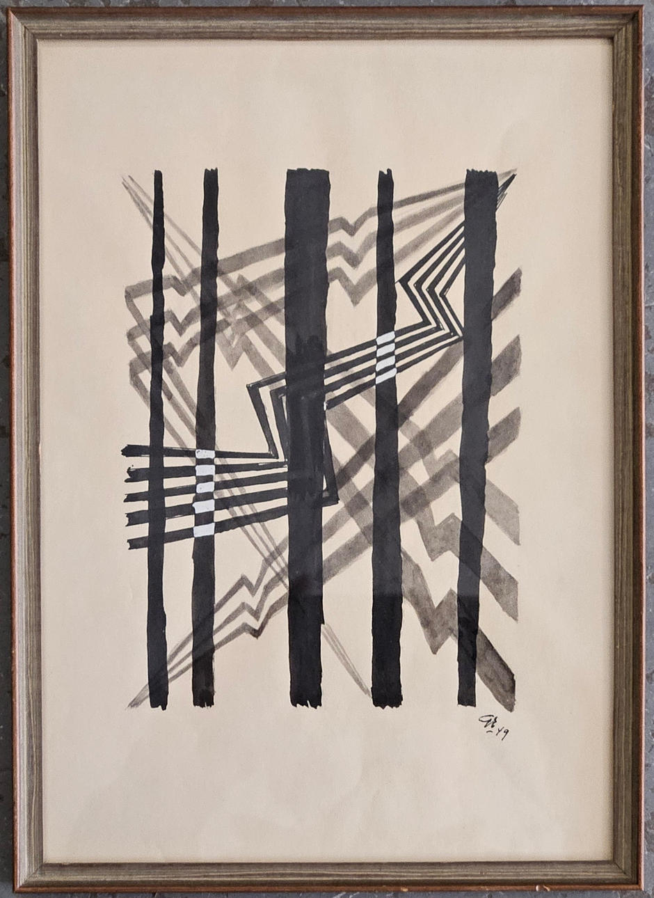 4957469. OIDENTIFIERAD KONSTNÄR. Composition. Mixed media, monogram signed GE and dated -49.