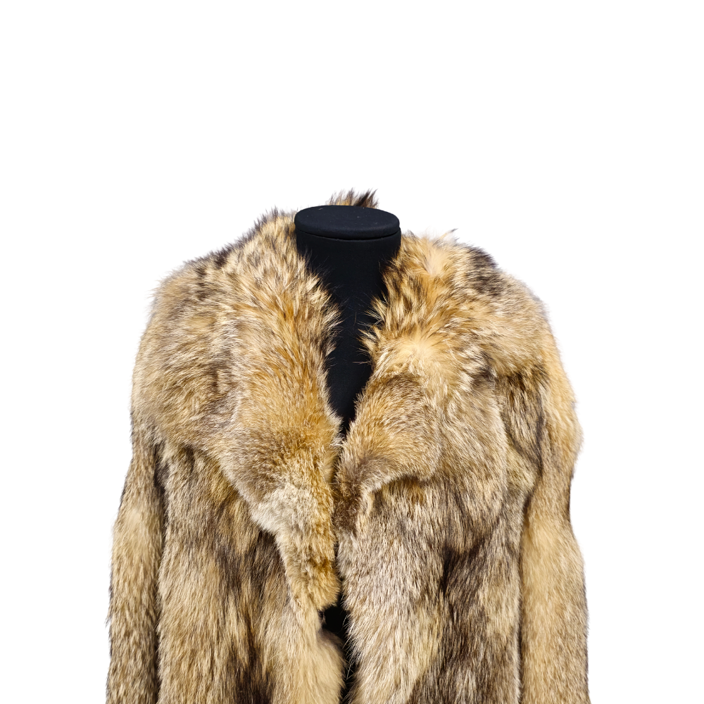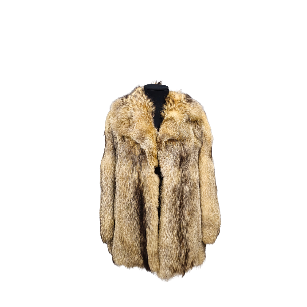 FOX FUR JACKET IN GREY TONES.