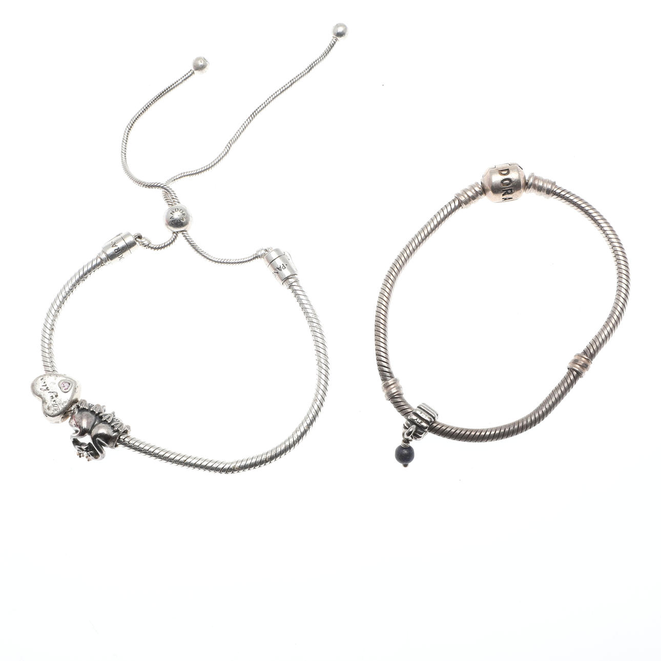 one adjustable with toggle and a total of three charms both marked ALE and 925.