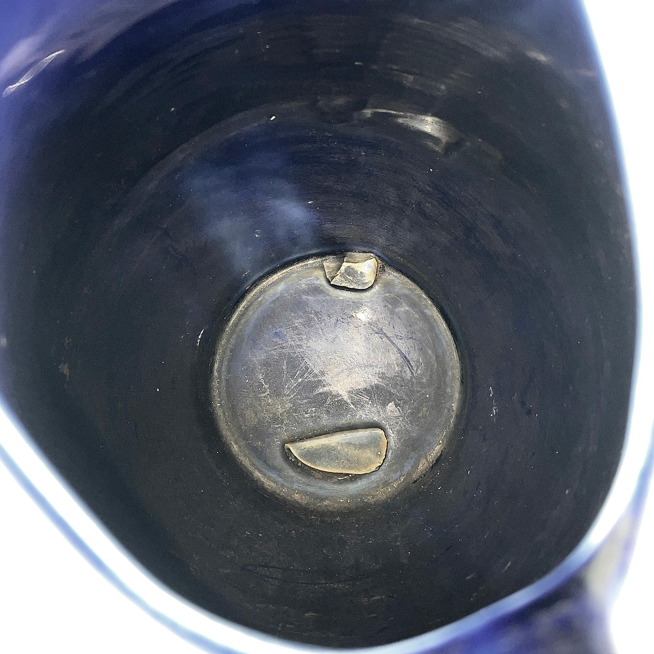 Blue-glazed flintware. Stamped underneath.
