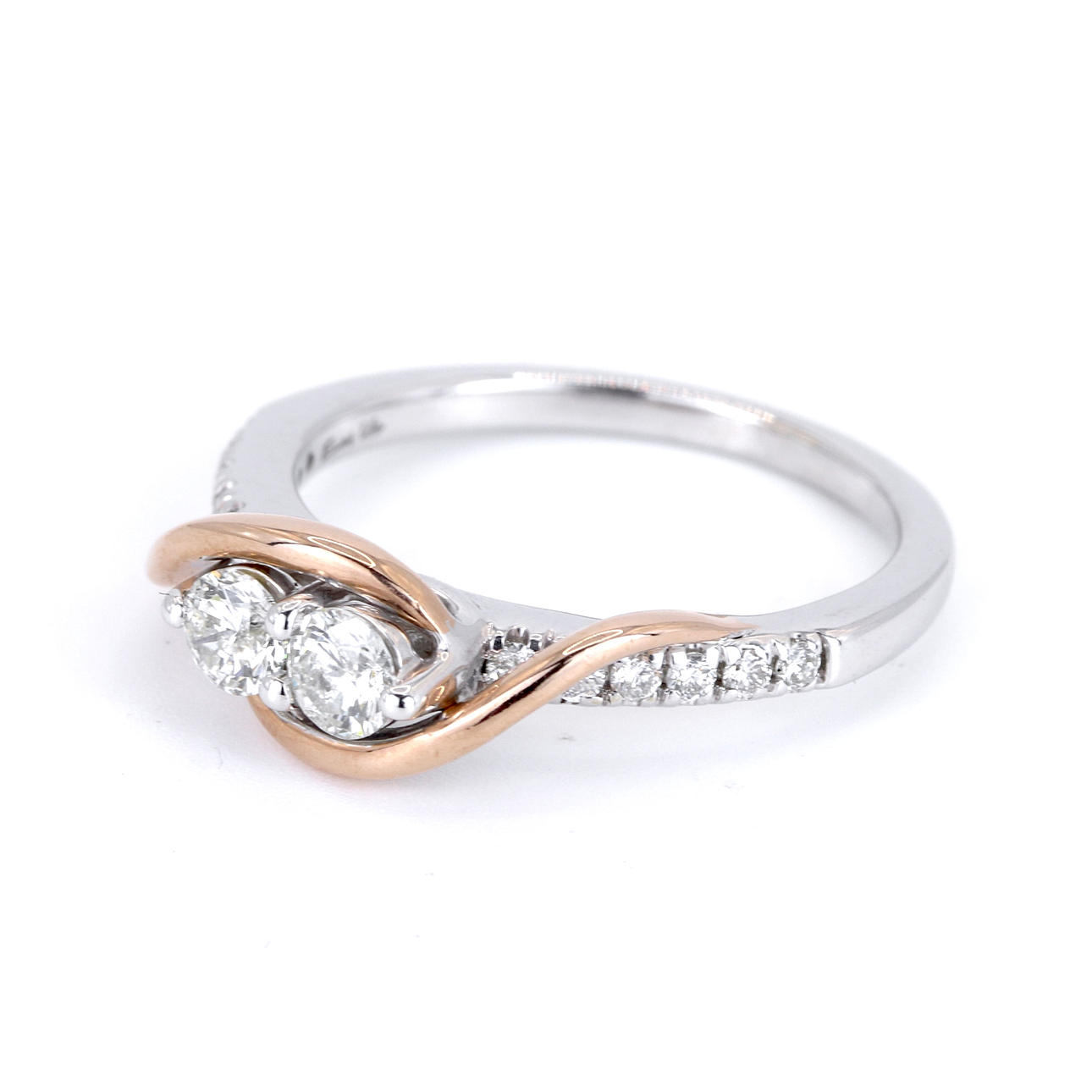 A 14ct rose & white gold ring set with diamonds. Dia. total: 0.50ct approx. Colour: H-I. Clarity: SI.