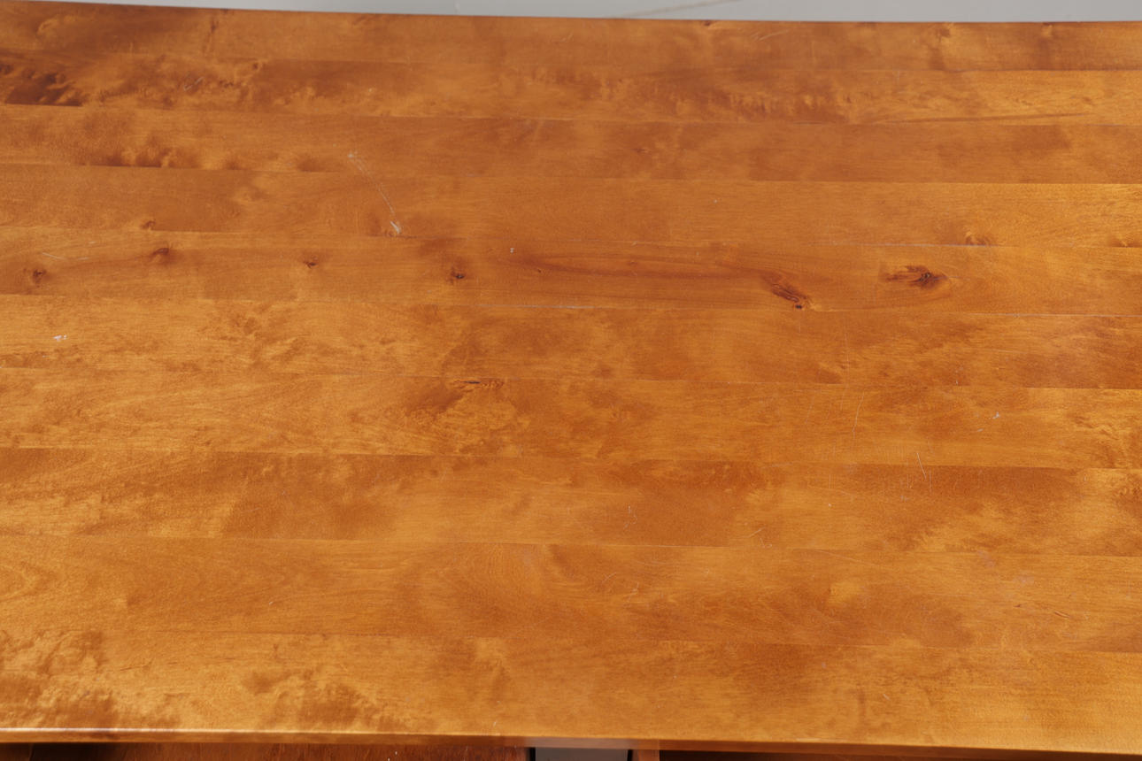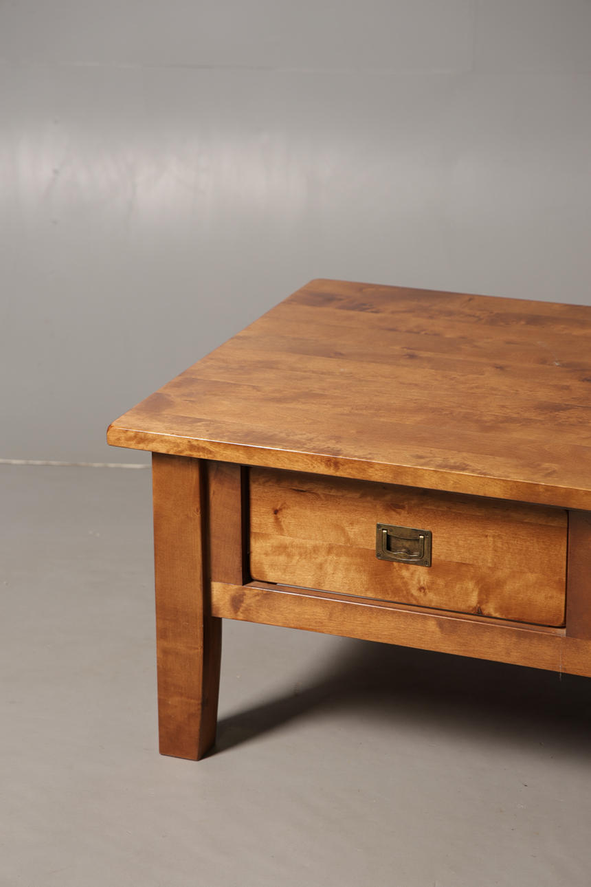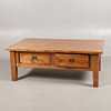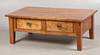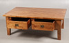 Fitted two drawers each side, 130cm wide, 75.5cm deep, 48cm high.