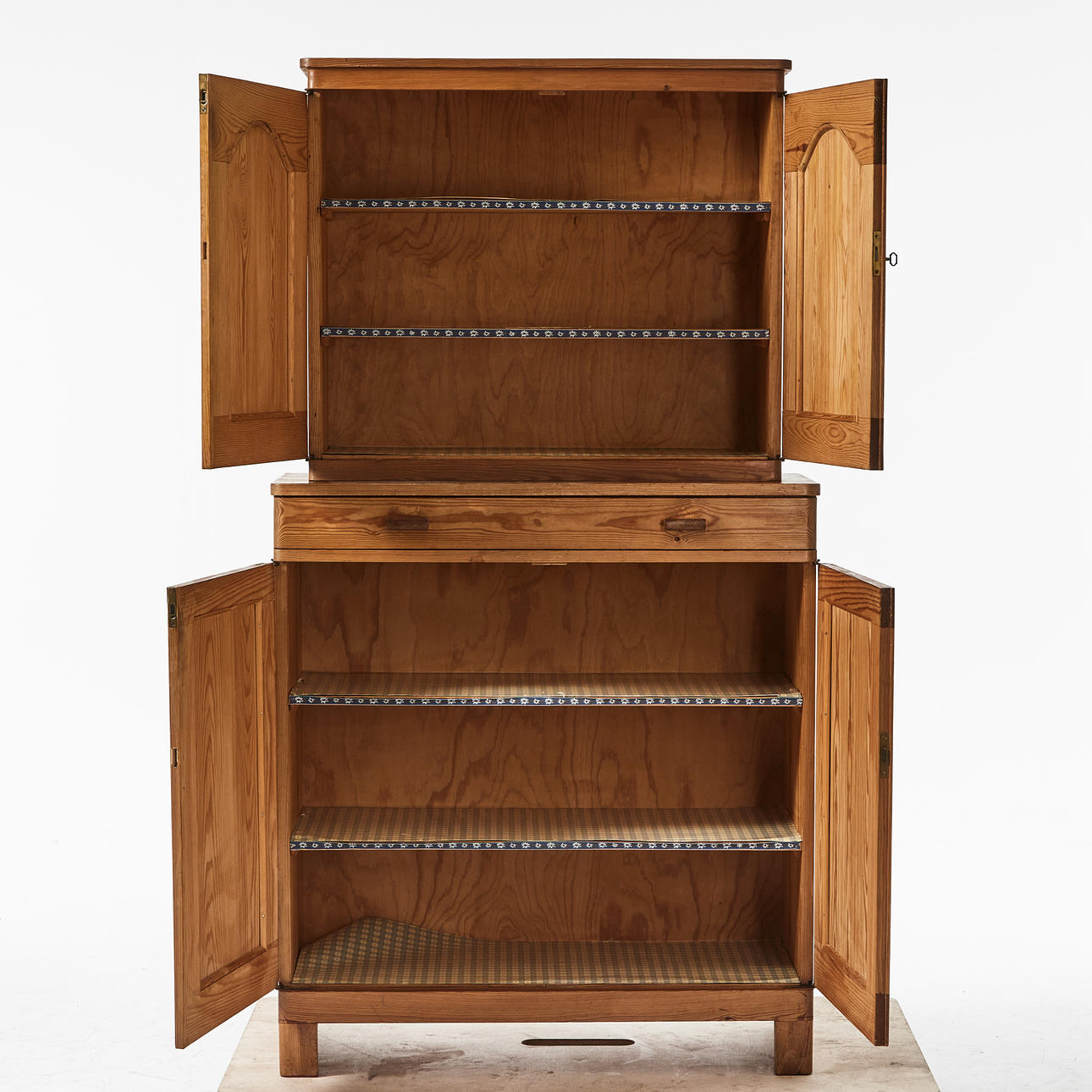 Cabinet, 1930s, pine, interior with shelves, drawer, divisible.