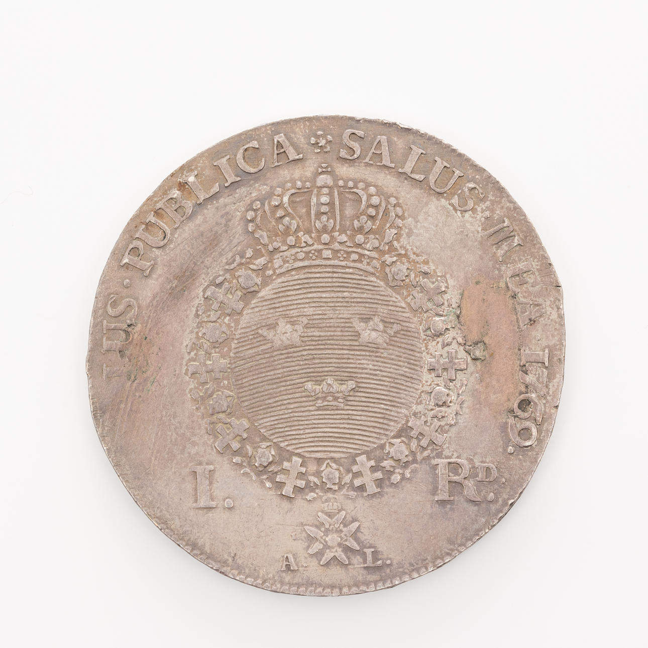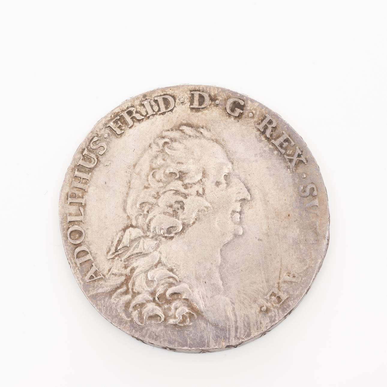 A silver coin, 1 Riksdaler, 1769, Adolf Fredrik.