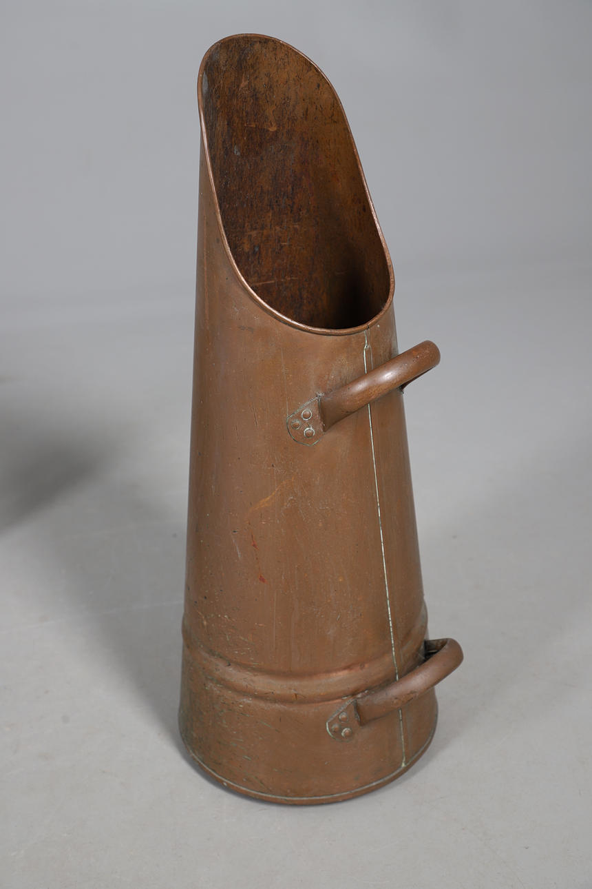 4957750. A CAST IRON FIRE GATE AND A COPPER COAL SCUTTLE.